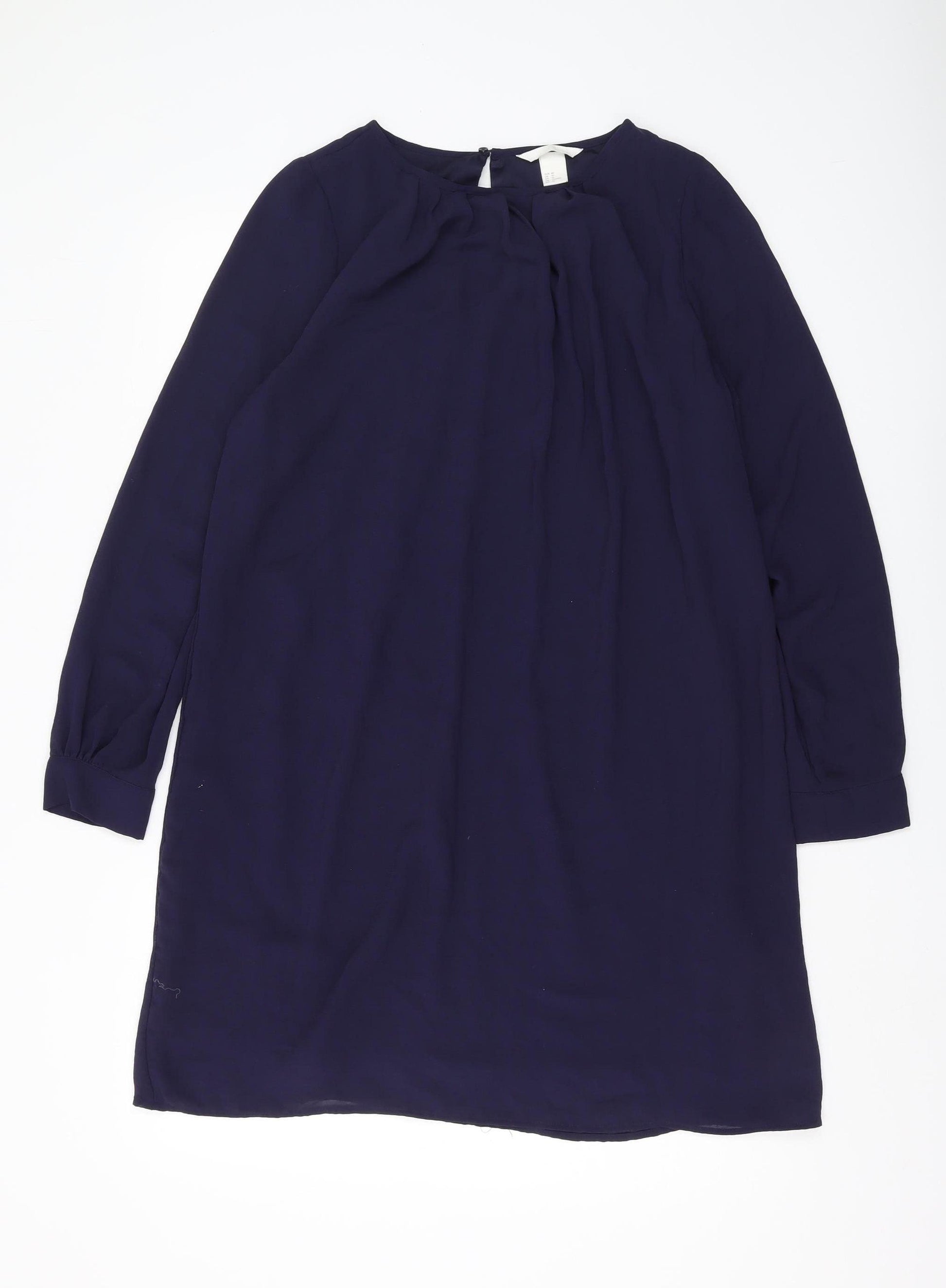 Step out in style with this chic H&M Women's Shift Dress crafted from 100% Polyester for effortless style and comfort. Featuring a flattering knee-length cut and crafted in a versatile blue, this dress is perfect for both casual outings and workwear. The dress boasts long sleeves, making it ideal for cooler autumn and winter months. The round neckline adds a touch of elegance while the lightweight, woven fabric ensures all-day comfort. It's machine washable, adding convenience to its stylish appeal. Designed with a button closure at the back, this dress offers practicality alongside its understated elegance. With a design that embraces simplicity, this H&M dress is perfect for those who love minimal yet sophisticated style. The dress is in excellent condition, with no visible damages, making it a great addition to your wardrobe. Enhance your style with this versatile piece that can be dressed up with accessories or kept simple for a classic look. Ideal for those who appreciate quality and style, this dress promises to be a favourite in your collection.