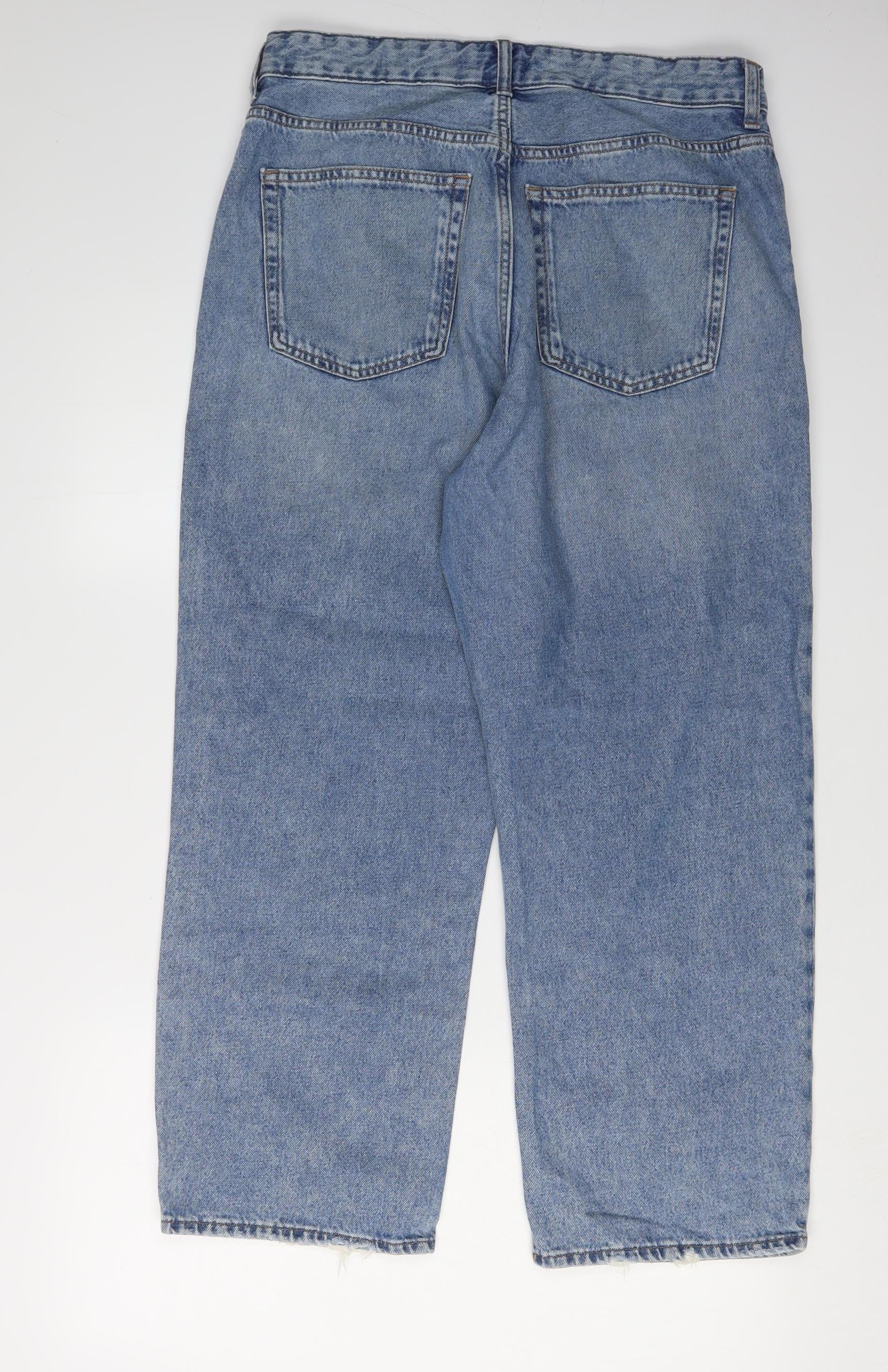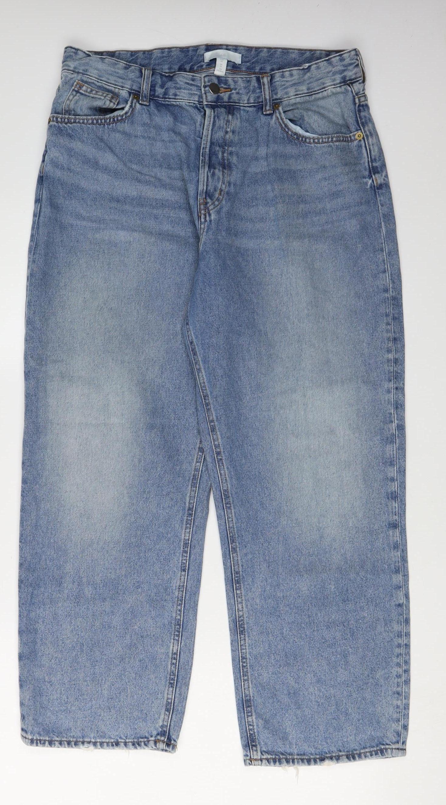 These classic H&M women's jeans feature a timeless straight-leg style in a versatile blue hue, perfect for elevating your casual wardrobe. Made from 100% cotton denim, these jeans offer a comfortable regular fit that seamlessly blends fashion with function. The medium fabric wash gives them a slightly lived-in look, emphasising their laid-back appeal. With a mid-rise design, these jeans provide a flattering silhouette that sits comfortably just below the waist. They incorporate the essential 5-pocket design, ensuring practicality while maintaining a sleek profile. Button closure adds to the classic styling, making these jeans both functional and fashionable. Perfect for all-season wear, their durable construction ensures they'll be a reliable staple in your closet. These jeans are machine washable, fitting seamlessly into your daily routine without fuss. Ideal for pairing with your favourite tops, whether it’s a casual tee or a dressy blouse, they offer endless styling possibilities. Coins, keys, or other small essentials fit snugly in the generous pocket space, adding practicality to style. Mild fading is present, adding character without compromising quality. In excellent used condition, these jeans show minimal signs of previous wear, bearing an authentic H&M tag for guaranteed quality. With the rich cotton fabric, they promise comfort and style, making them perfect for everyday wear or weekend outings. Whether you're heading to the market or having a leisurely walk in the park, these jeans will be your go-to choice. Add these versatile straight-leg jeans to your collection for a subtle yet chic addition to any outfit.