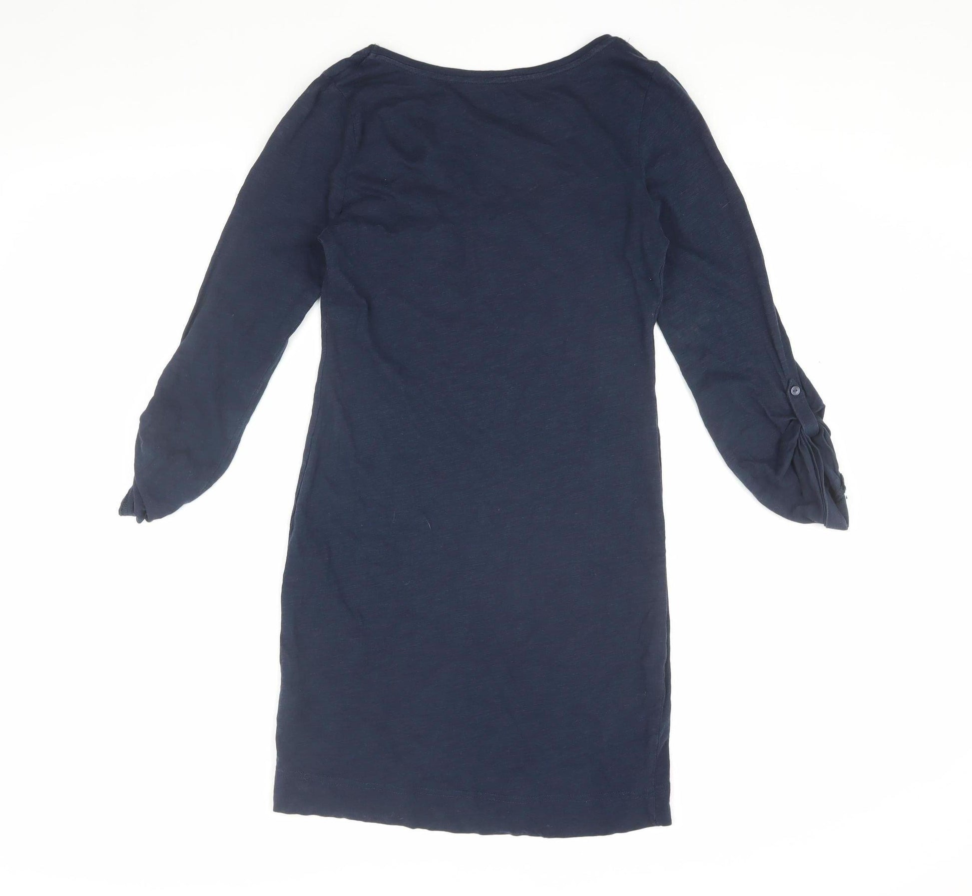 Discover effortless style with this H&M Women's Shift Dress, perfect for casual days out and versatile wear. Crafted from 100% organic cotton, this jersey dress ensures maximum comfort with a lightweight feel, ideal for both spring and autumn seasons. The dress features a beautiful blue hue, detailed with a scoop neckline and 3/4 roll tab sleeves for an adaptable look. Simplicity is key with its knee-length shift design that enhances a streamlined silhouette. The pullover closure makes it easy to wear, while a single pocket accent adds a touch of functionality to the piece. This dress suits various occasions such as casual gatherings or leisurely strolls. Its excellent condition is maintained by machine-washable care, promising ease of maintenance. This wardrobe essential invites multiple styling options, whether paired with sneakers for a relaxed day out or dressed up with boots and a belt for something more elegant. Elevate your wardrobe with this simplistic yet chic H&M dress that resonates with charm and effortless grace.