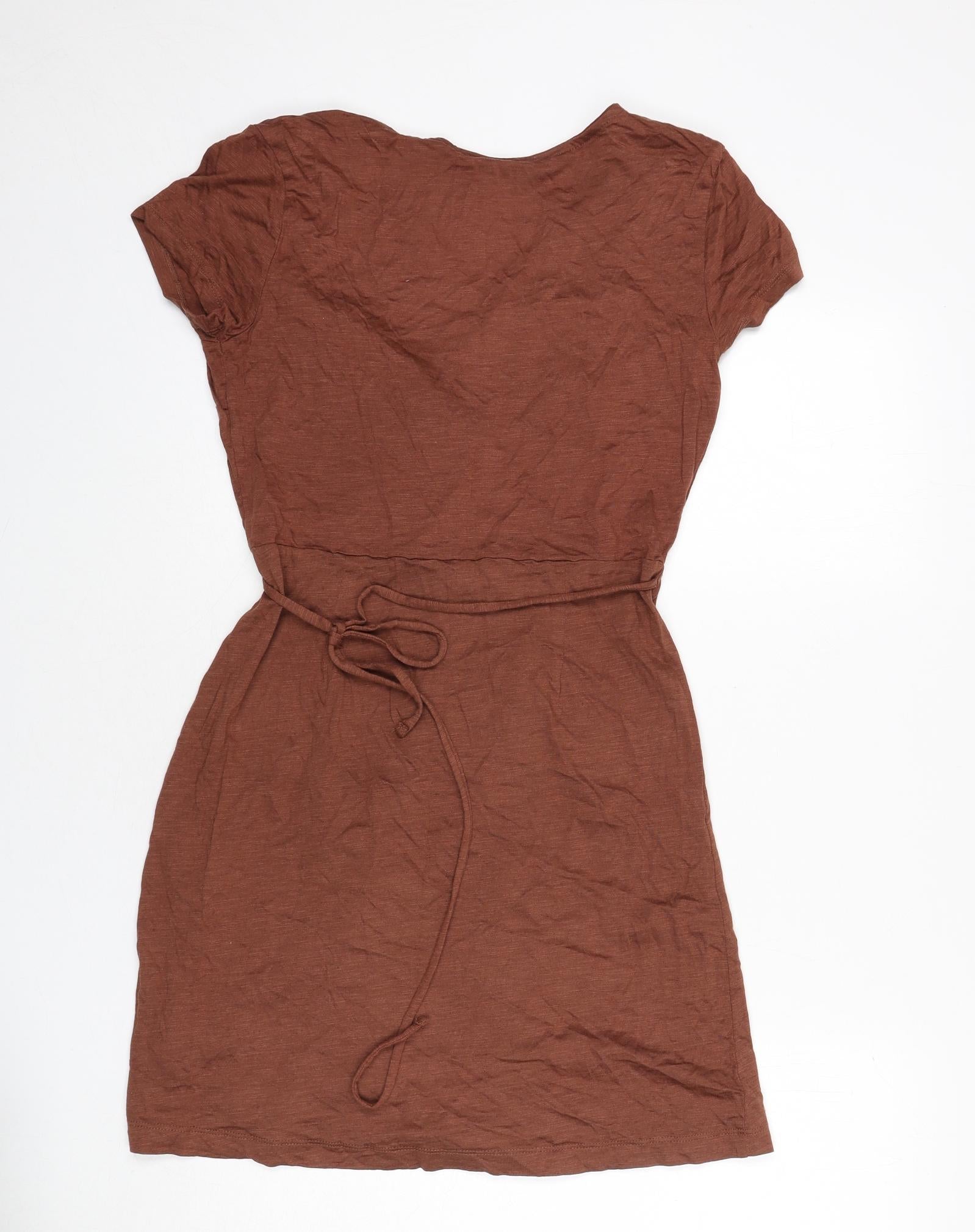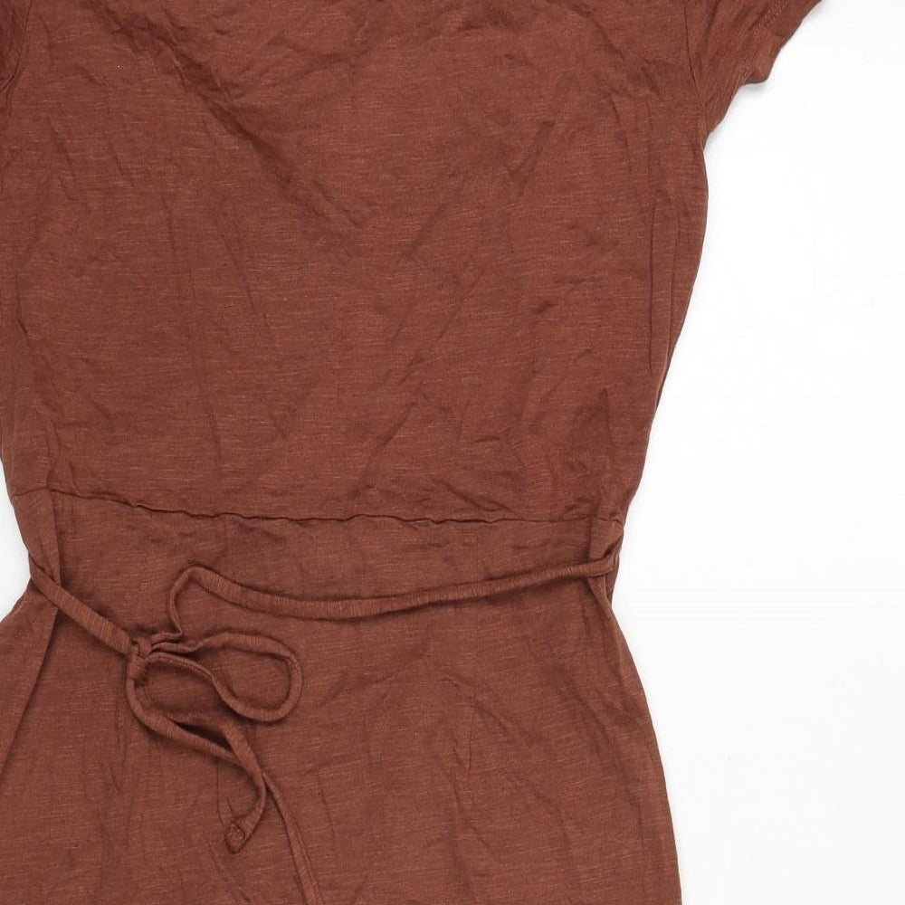 Womens Brown Cotton A-Line Size M V-Neck Pullover - Tie Detail