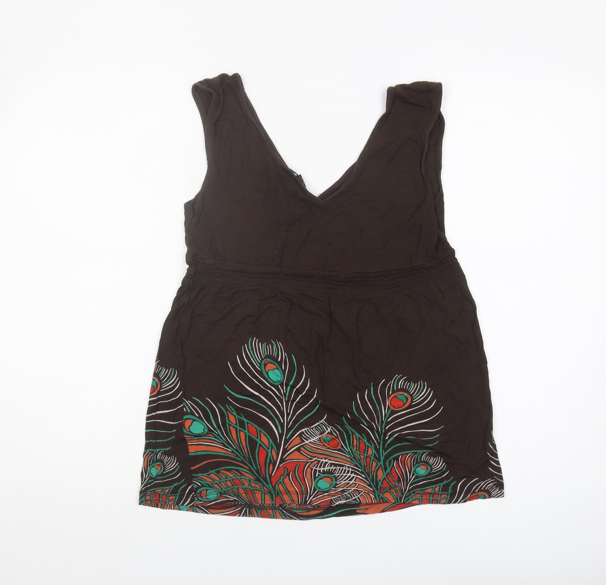 This elegant H&M women's tunic tank is a versatile addition to any wardrobe. Designed with a flowing V-neckline, it features a captivating brown colour enhanced with a unique floral pattern that adds a touch of sophistication to your casual ensemble. Constructed from 100% viscose, the sleeveless tank ensures both comfort and durability, ideal for all-day wear. The regular fit and wide straps refine your silhouette while allowing ease of movement. Perfect for an easygoing day out or laid-back social gatherings, pair this tunic with your favourite jeans or leggings for an effortlessly chic look. Easy to care for, it’s machine washable, ensuring hassle-free maintenance.