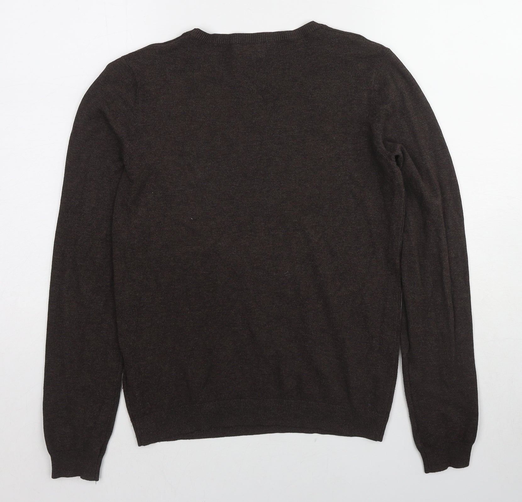 Womens Brown Round Neck Viscose Pullover Jumper Size S