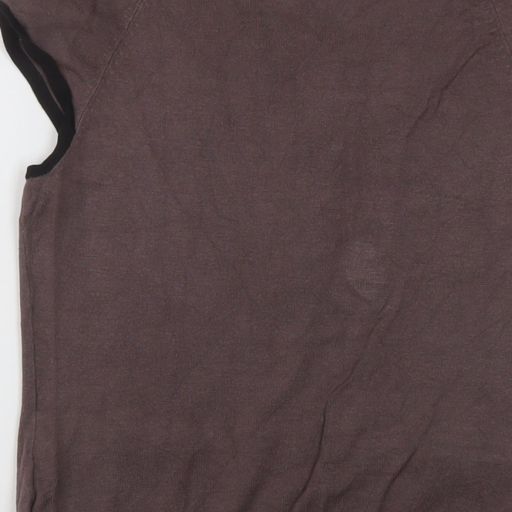 Womens Brown Viscose Basic Blouse Size S Round Neck