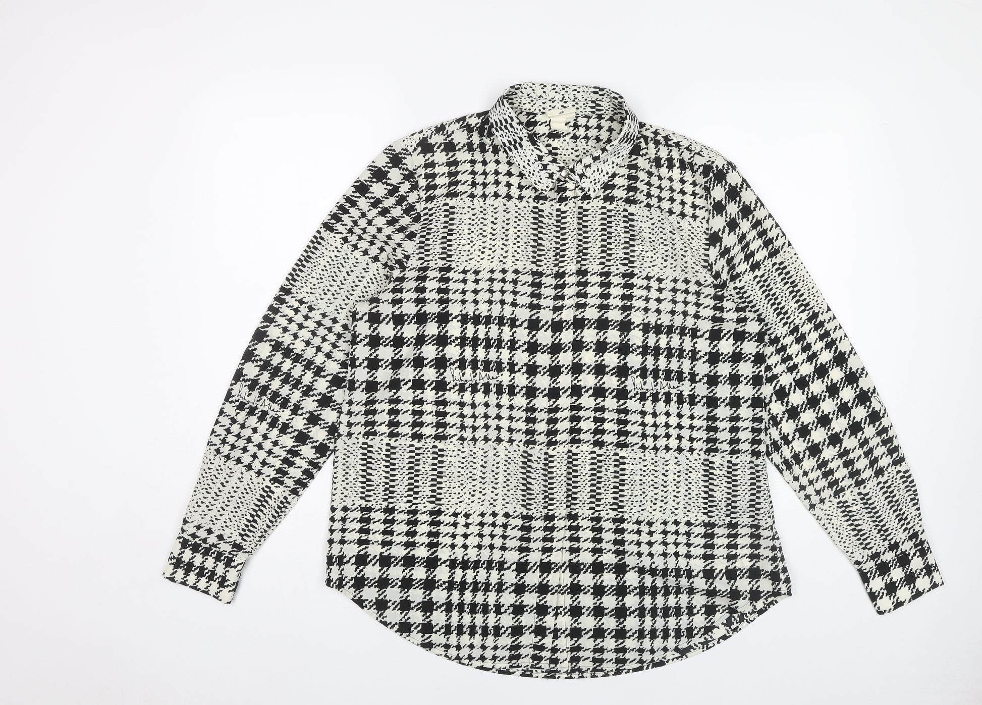 Elevate your wardrobe with this stylish H&M Women's Check Button-Up Shirt, perfect for casual occasions and versatile enough for the changing seasons. Crafted from high-quality polyester, it promises both comfort and durability, allowing you to enjoy your everyday activities with ease. The collared neckline and classic black and white check pattern offer a timeless appeal, pairing effortlessly with your favourite jeans or skirts. Designed for the modern woman, this shirt features long sleeves ideal for cooler days and a tailored regular fit for a flattering silhouette. Its regular size and machine washable care instructions ensure convenience and ease of use. Whether you're heading out for a casual day with friends or need a reliable option for transitional seasons, this shirt is a wardrobe essential. Its excellent condition guarantees a near-new feel at great value. Don't miss the chance to own this chic and versatile shirt that combines both style and functionality, a must-have for any fashion enthusiast.