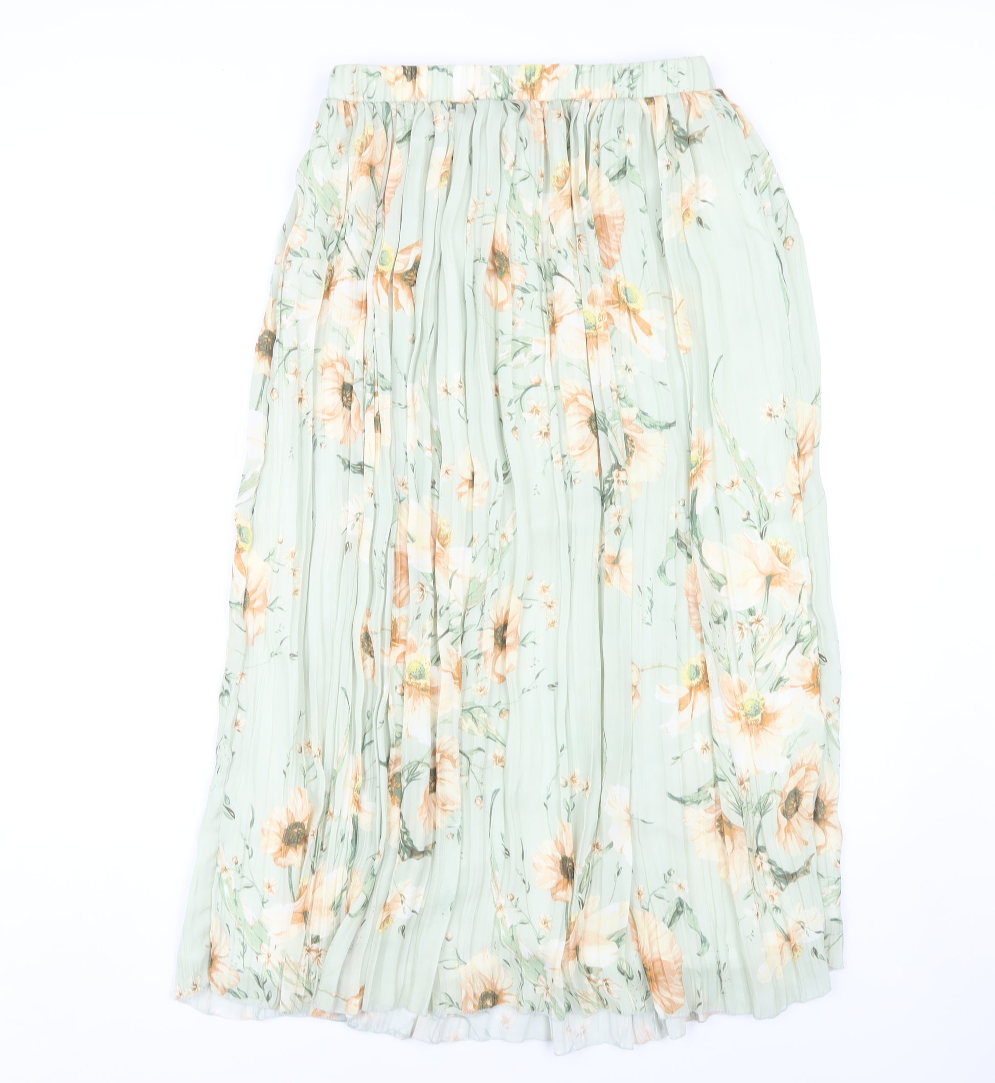 Elevate your wardrobe with this enchanting floral pleated midi skirt. Crafted from lightweight chiffon, this skirt features a delightful multicoloured floral pattern, perfect for spring and summer outings. The elastic waistband offers comfort and flexible wear, while the pleated design adds a touch of elegance to your look. Ideal for any casual occasion, this skirt effortlessly combines style and ease. Whether you're heading to a brunch or a garden party, its floral theme will add a charming flair. The skirt is fully lined, providing additional comfort and ensuring you feel confident throughout the day. Machine washable for your convenience, it's easy to care for without sacrificing style. With a mid-rise fit and pullover closure, it offers a flattering silhouette for regular size wearers. Embrace the beauty of spring and summer with this versatile piece that promises to make you stand out with grace and style.