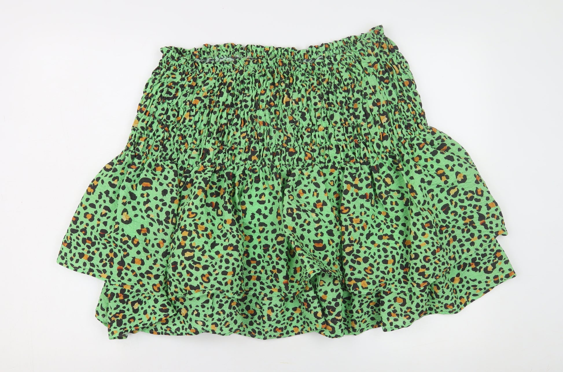 Step out in style with this chic H&M Women's Green Animal Print Flare Skirt. Crafted in a vibrant green shade adorned with a playful animal print, this skirt is sure to turn heads. Designed with an elastic waist for easy wearability, it promises comfort without compromising on style. Its lightweight fabric makes it perfect for spring and summer outings, whether you're heading to a casual gathering or a party. The flared style adds a touch of elegance, whilst maintaining a relaxed vibe. Machine washable for easy care, this skirt fits into the lives of busy women who still want to keep their wardrobe fresh and fashionable. Pair it with a simple top and sandals for a complete look that exudes effortless charm. Perfect for women who love to combine comfort with trendy styles, this skirt is an essential addition to your wardrobe. Don't miss out on making it yours!