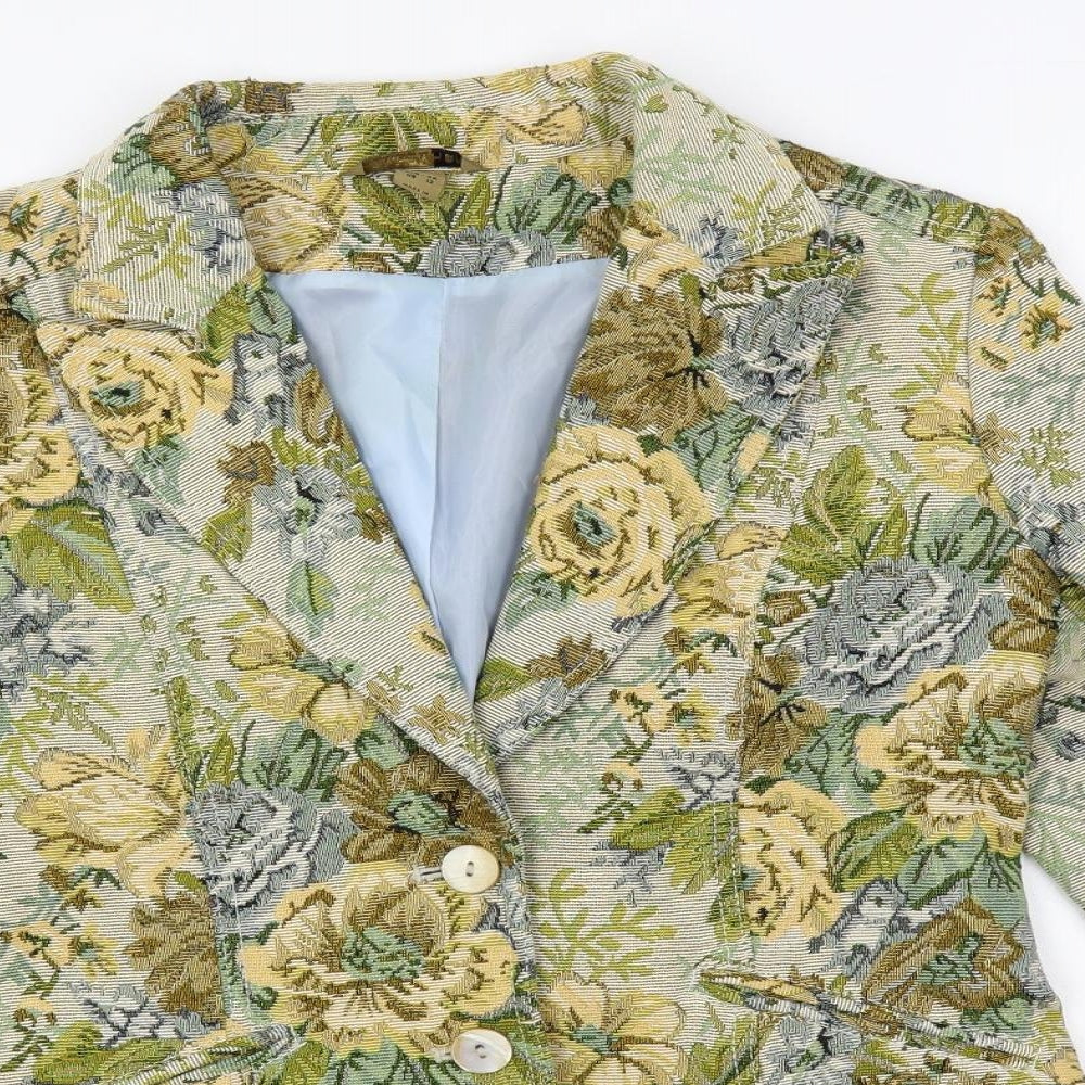 Womens Green Floral Jacket Blazer Size 14 Button