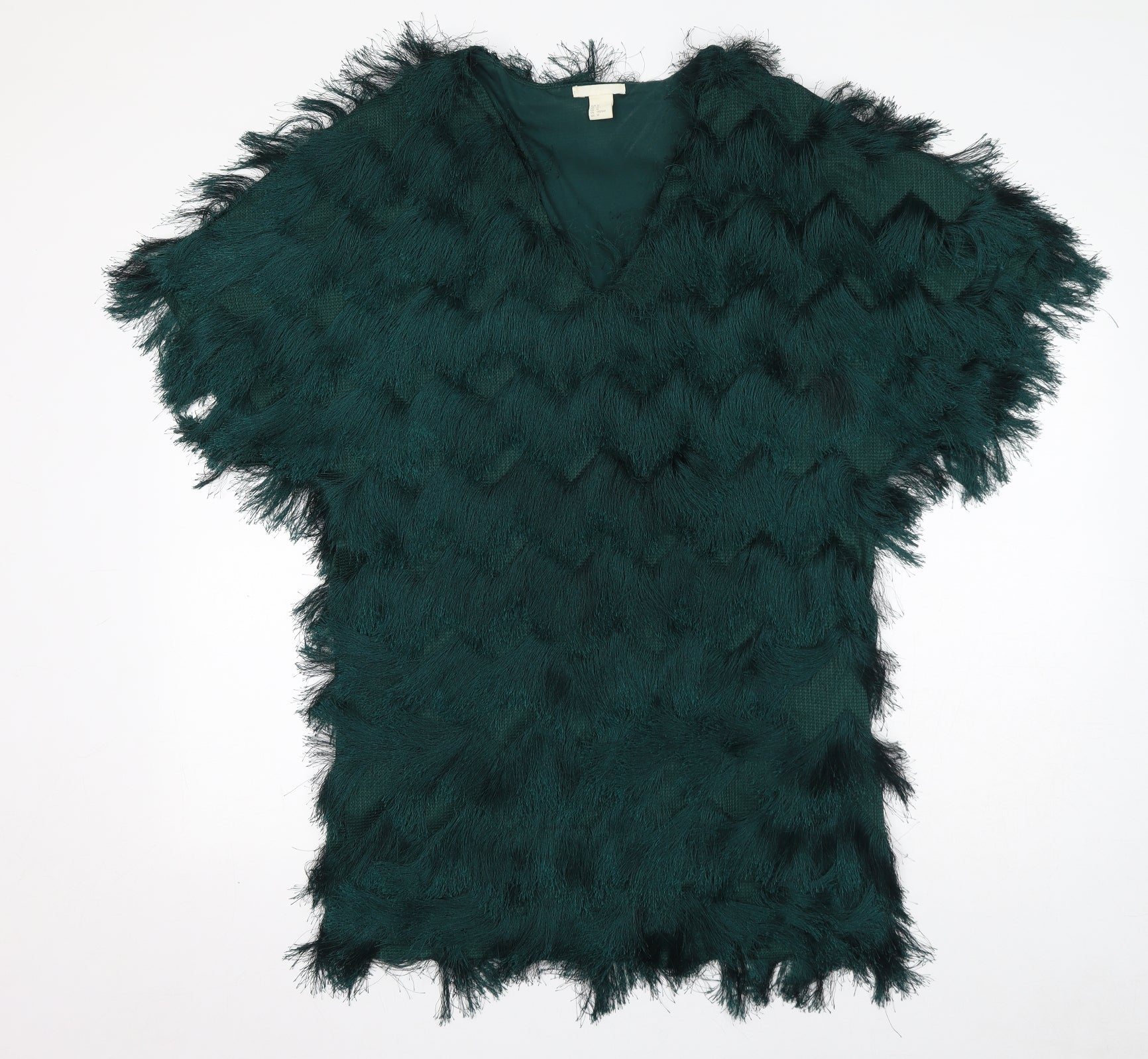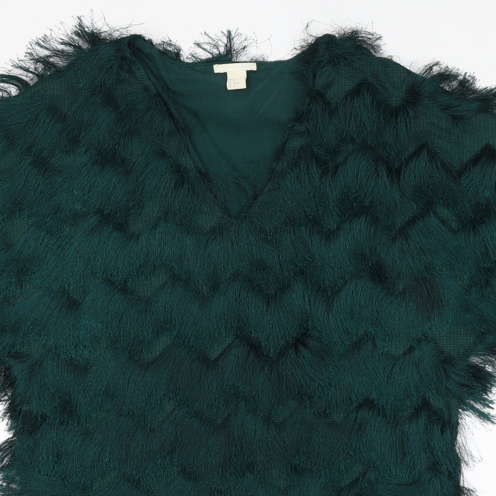 Womens Green Polyester T-Shirt Dress Size M V-Neck Pullover