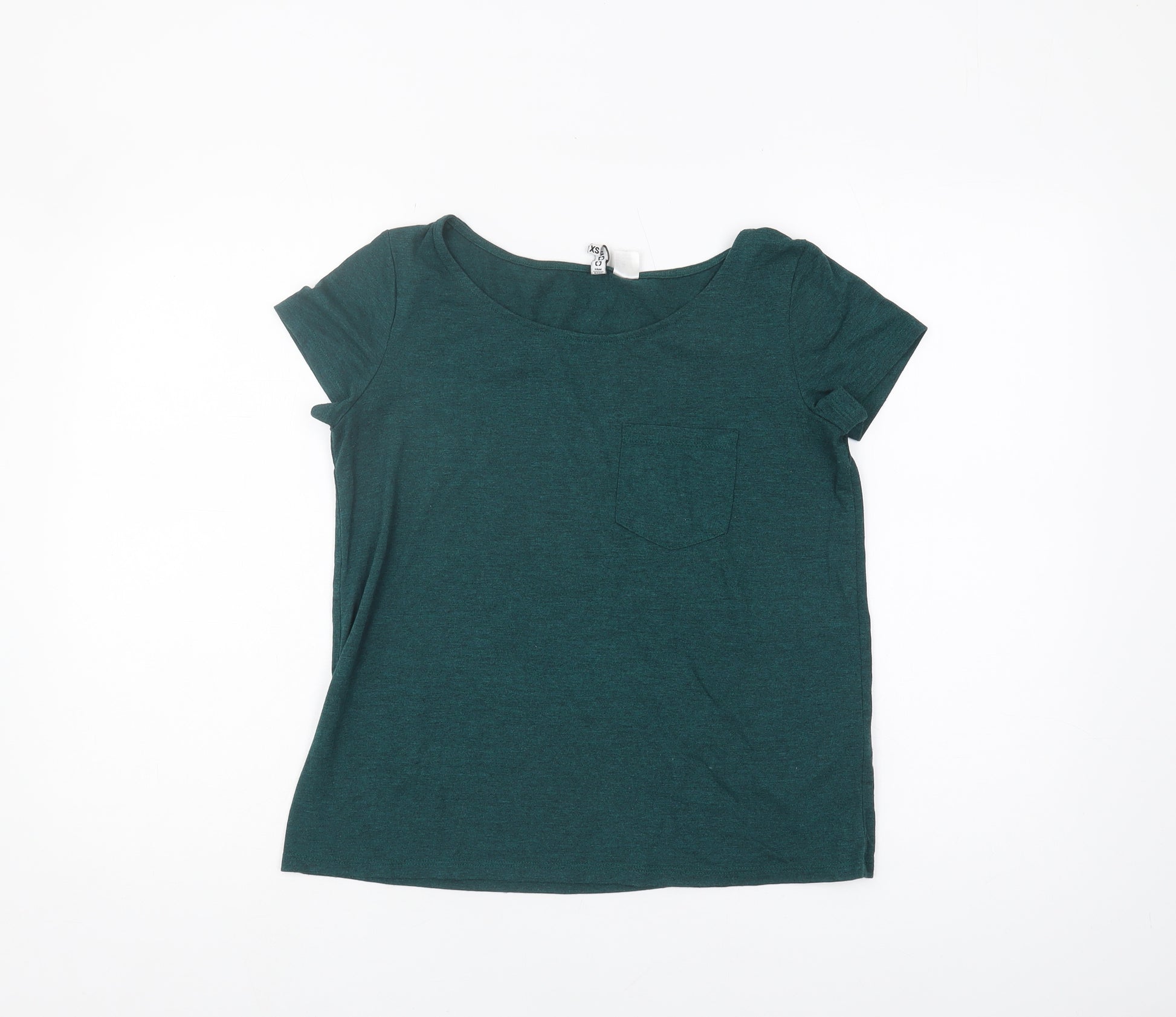 This H&M Women's T-Shirt in a rich green hue is perfect for casual outings and everyday wear. Crafted from a comfortable and breathable blend of viscose, polyester, and polyamide, this top ensures a soft and smooth feel against the skin. The solid pattern and round neckline with a fitted sleeve design contribute to its classic appeal, making it a versatile addition to any wardrobe.Ideal for all seasons, this basic style T-Shirt features a convenient pocket for added functionality. The lightweight fabric ensures comfort without compromising on style, providing ease of movement. With a regular fit and pullover closure, it offers an effortlessly chic look, ideal for pairing with jeans or skirts for various occasions.Machine washable and easy to care for, this T-Shirt fits the bill for those looking for style without the hassle. Its vibrant green shade adds a pop of colour to your outfit, while its minimalist design allows for creative styling with accessories. In excellent condition, this piece has been lightly worn with no visible signs of damage, making it a fantastic choice for fashion-conscious individuals seeking both quality and affordability.Ensure you stand out with this timeless wardrobe staple that balances comfort and elegance, allowing for endless styling possibilities.