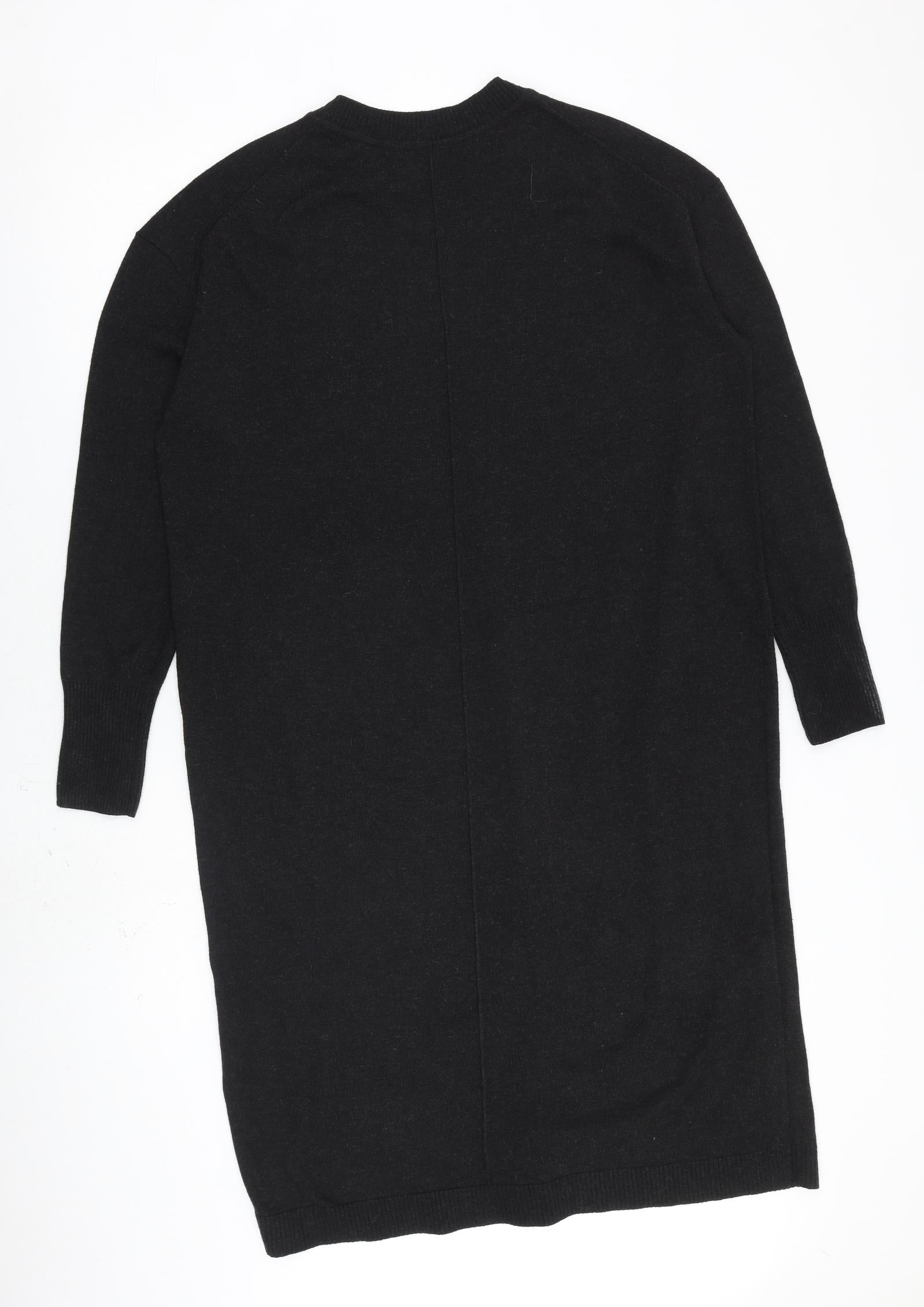 H&M Womens Black Colourblock Viscose Jumper Dress Size M Square Neck Button