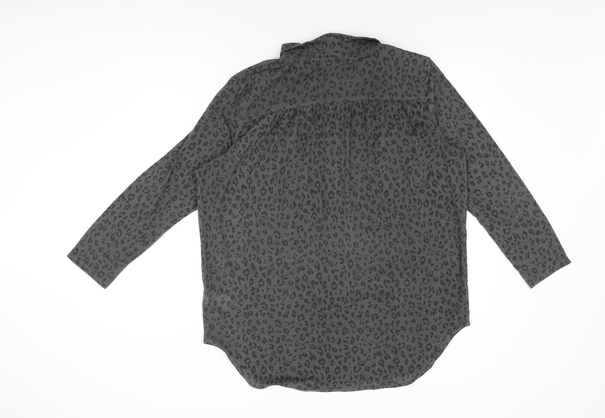 Womens Grey Animal Print Viscose Basic Button-Up Size M Collared