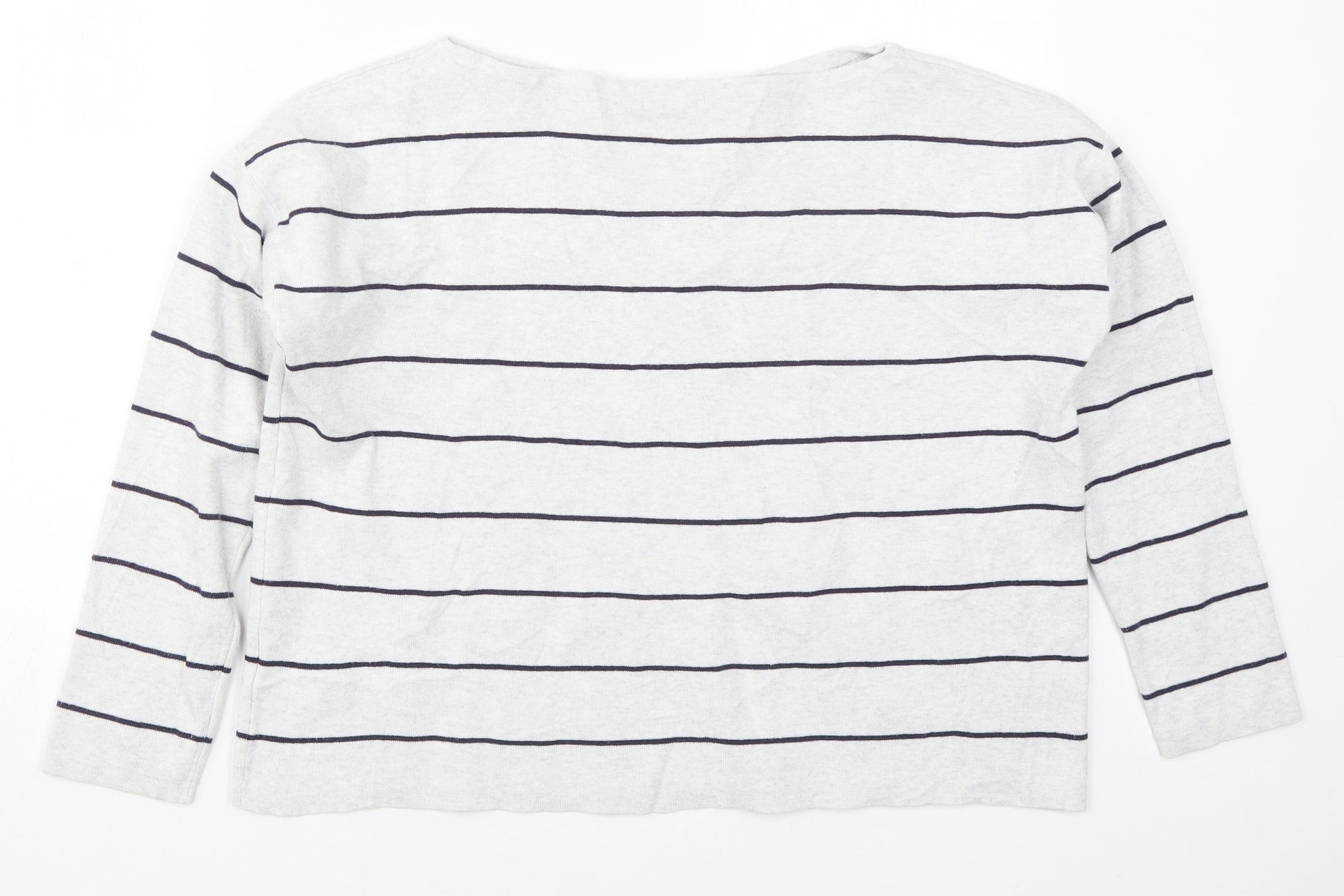 Womens Grey Boat Neck Striped Cotton Pullover Jumper Size S