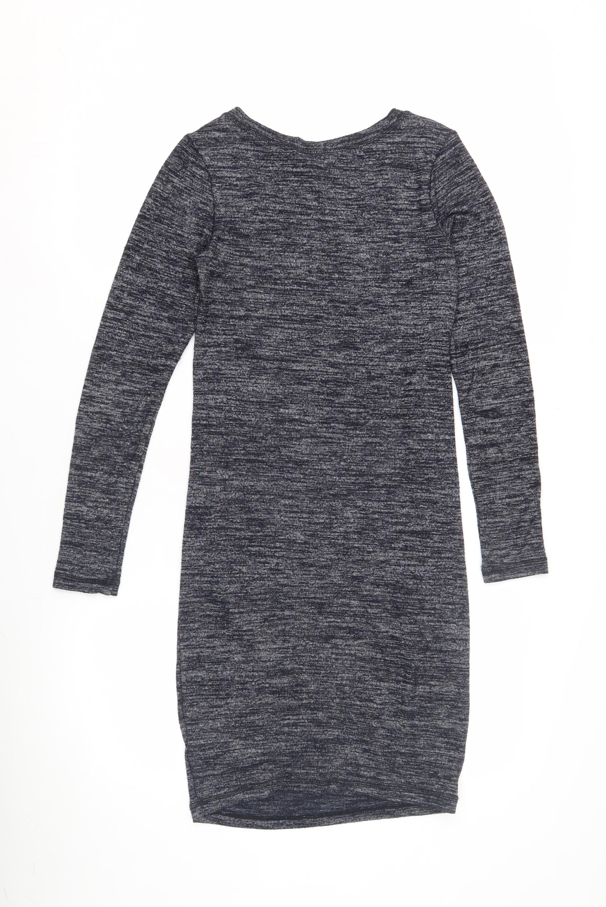 Quiz Womens Grey Acrylic Jumper Dress Size S Mock Neck Pullover - Ballooon sleeve