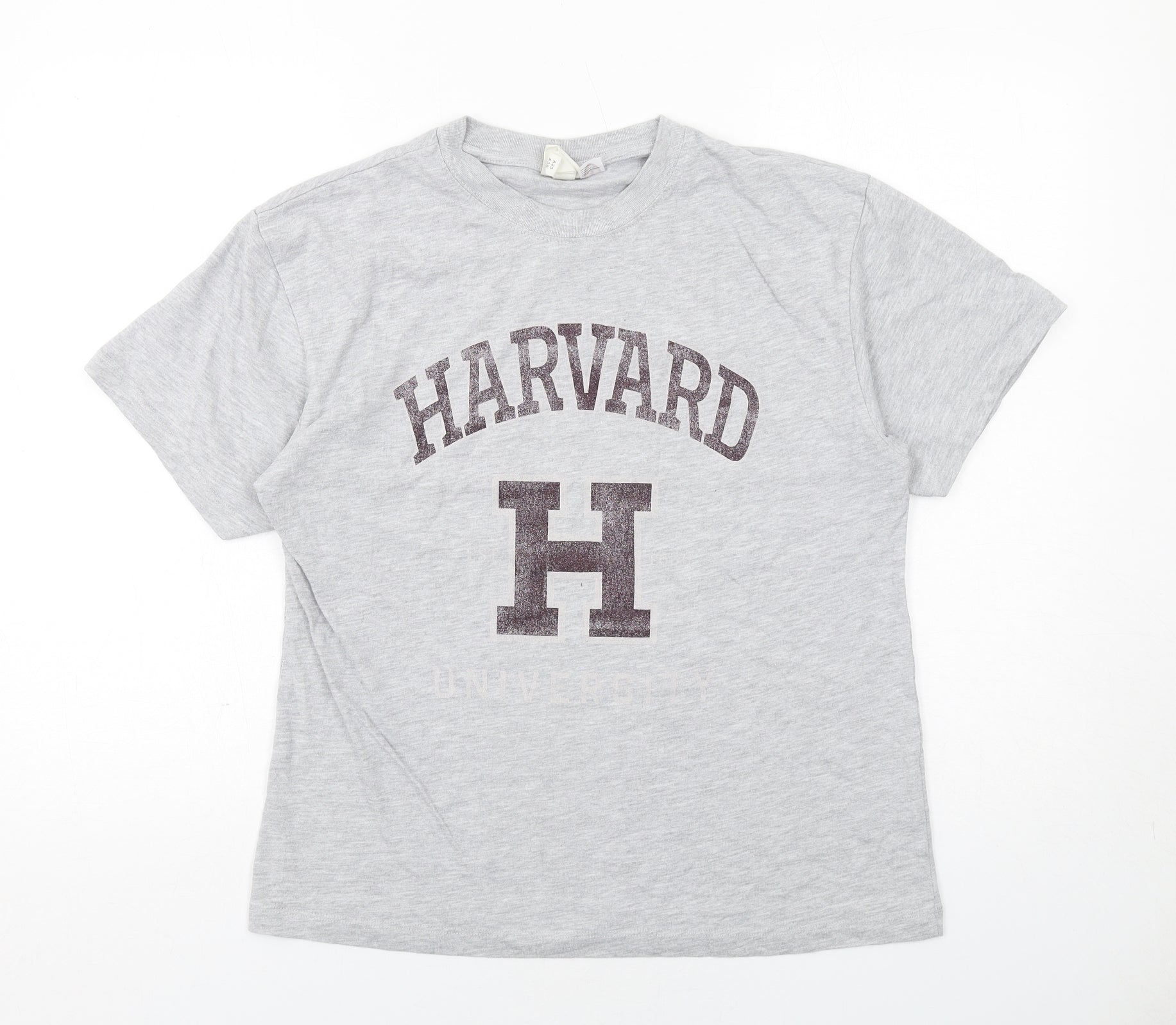 Womens Grey Cotton Basic T-Shirt Size S Crew Neck - Harvard