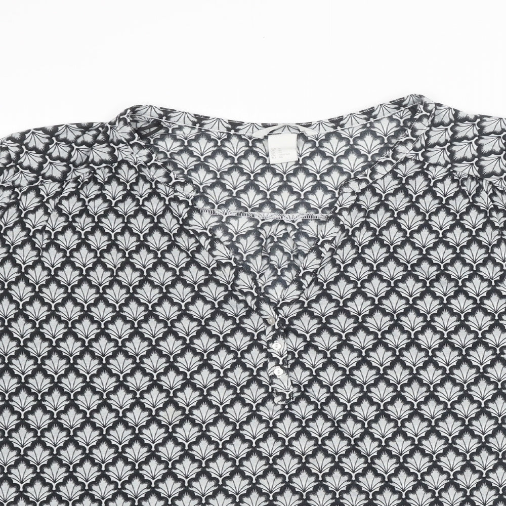Womens Grey Geometric Polyester Basic Blouse Size XL V-Neck