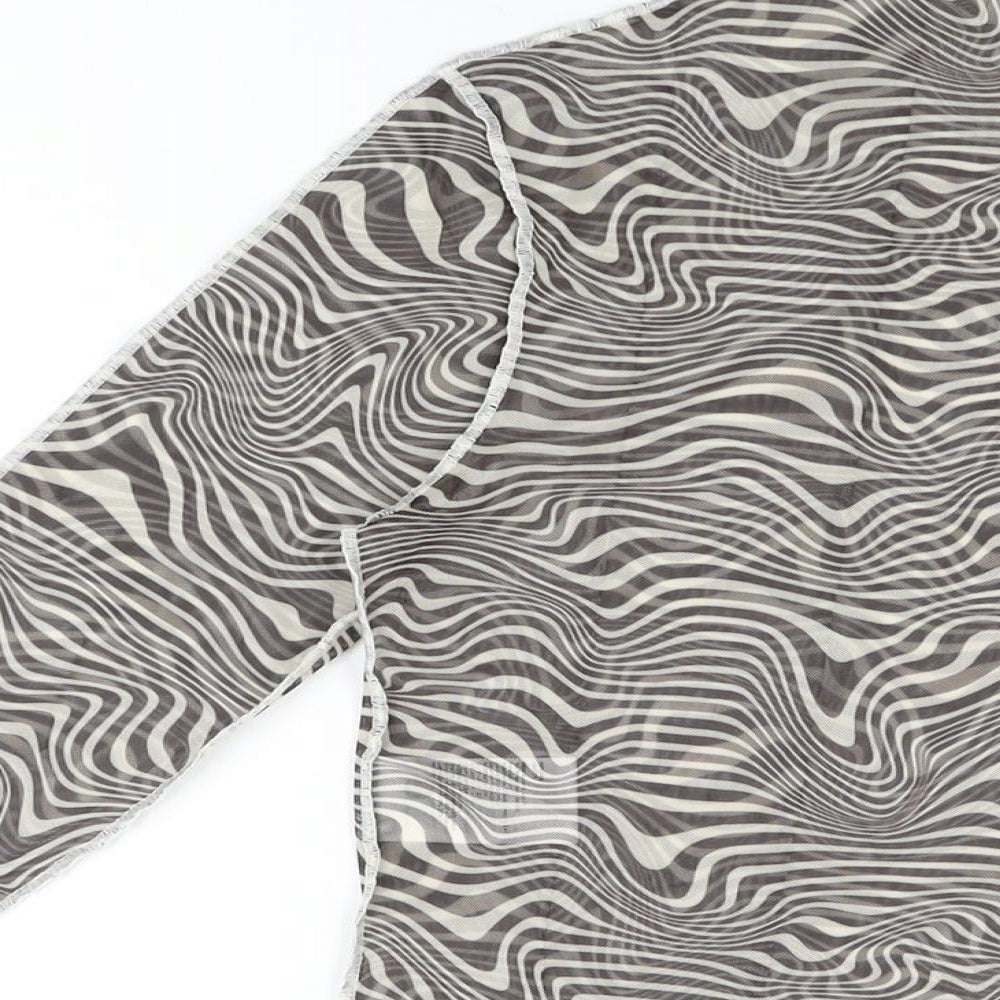 Womens Grey Geometric Polyester Basic T-Shirt Size M Round Neck - Sheer