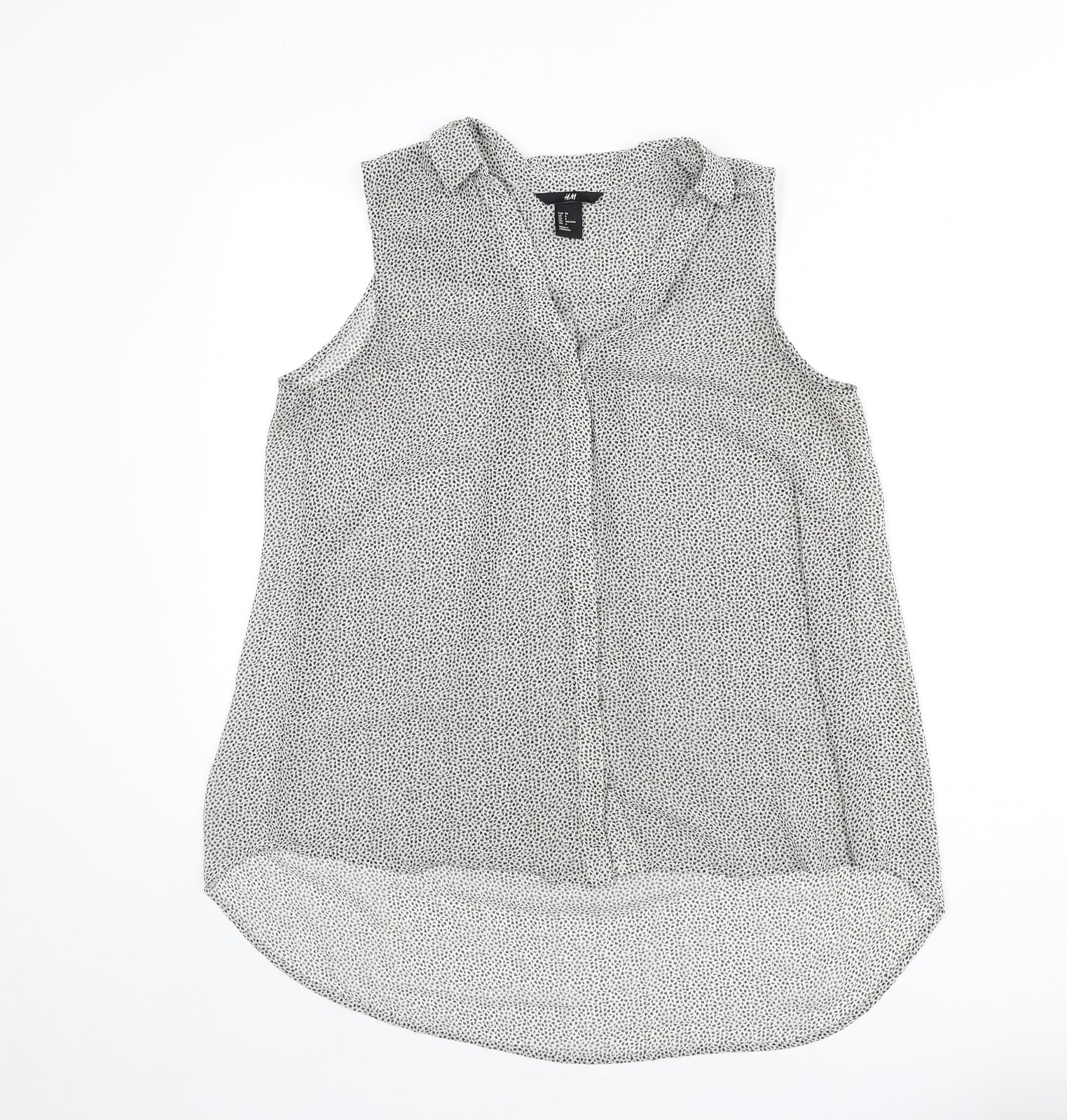 Womens Grey Geometric Polyester Basic Tank Size 10 Collared