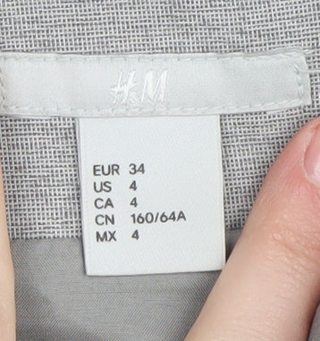 Step into sophistication with this H&M Women's Grey Pencil Skirt in size 6. Perfectly tailored for a flattering knee-length fit, this skirt is a must-have addition to any woman's wardrobe. Crafted from a blend of 62% polyester, 33% viscose, and 5% elastane, it offers a comfortable and flexible fit. The sleek twill fabric and mid-rise design make it ideal for both business and casual occasions, while the straightforward zip closure ensures ease of wear. Featuring a modest slit for added movement, this straight-pencil skirt combines style and practicality. Its classic no-pattern design in a versatile grey shade pairs effortlessly with a variety of tops and accessories, making it a staple for all seasons. Ideal for business meetings, casual outings, or as professional workwear, it's machine washable for hassle-free care. Embrace timeless elegance with this well-maintained piece that's ready to complement any outfit.