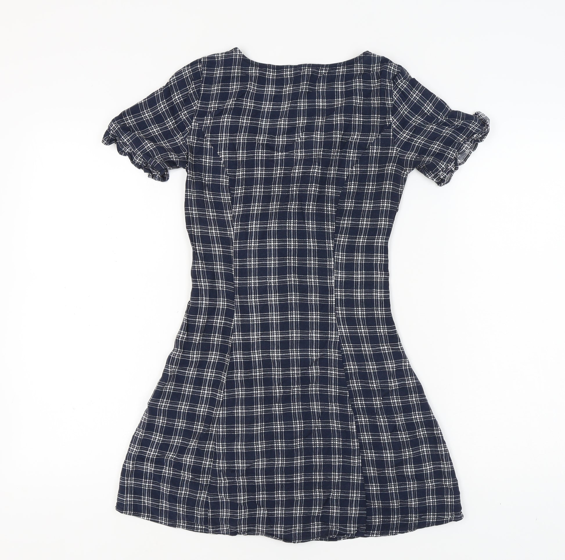 Embrace effortless style with this charming H&M plaid shirt dress. Crafted from soft viscose, this dress offers comfort and a relaxed fit, perfect for casual outings. The timeless grey plaid pattern adds a touch of classic appeal, while the short puff sleeves and V-neckline lend a modern twist. Designed with button accents and a flattering A-line silhouette, this versatile piece is a must-have for any wardrobe. Ideal for casual occasions, pair it with your favourite sandals or trainers for an easy, stylish look. Its machine-washable fabric ensures fuss-free maintenance, making it a practical choice for everyday wear. Lightly worn, this dress remains in excellent condition, ready to become a staple in your fashion repertoire.