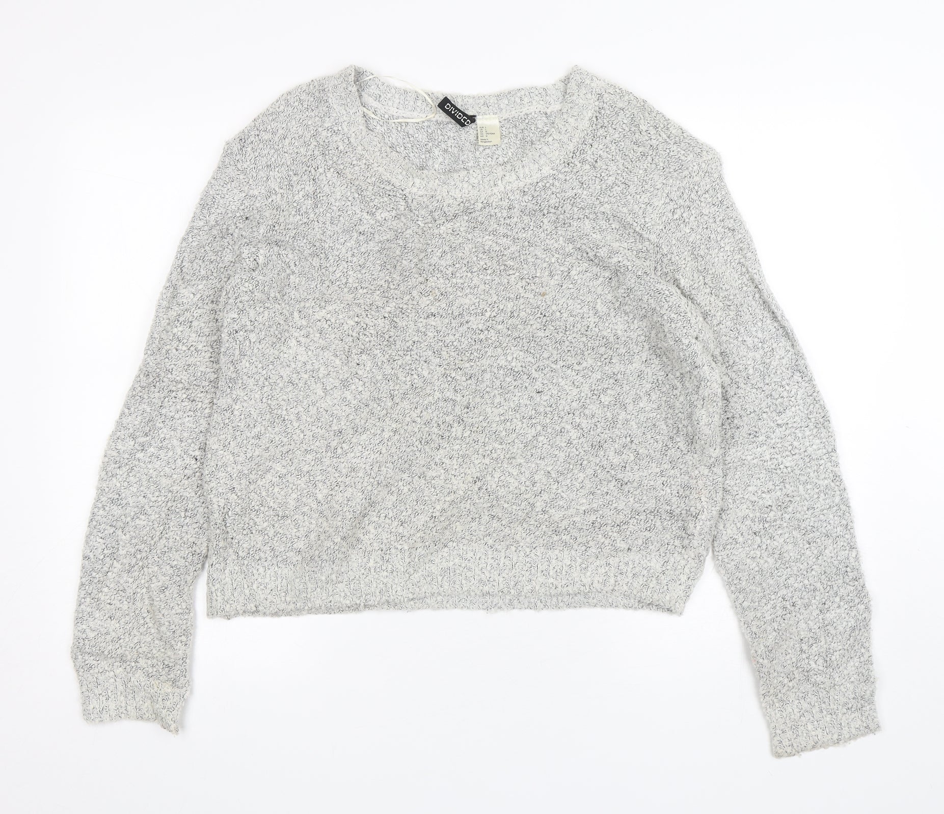 Womens Grey Round Neck Acrylic Pullover Jumper Size L