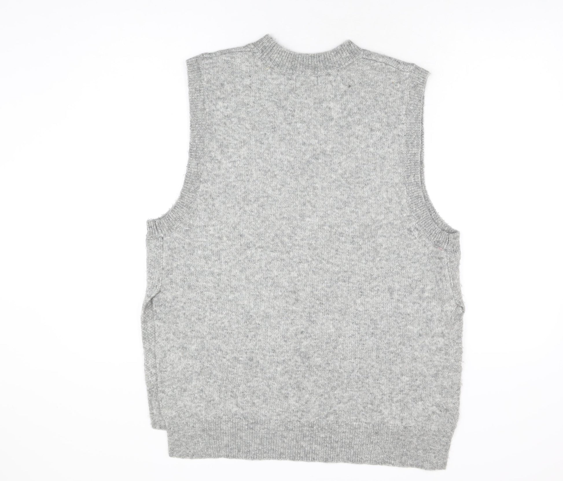 Womens Grey Round Neck Wool Pullover Jumper Size S