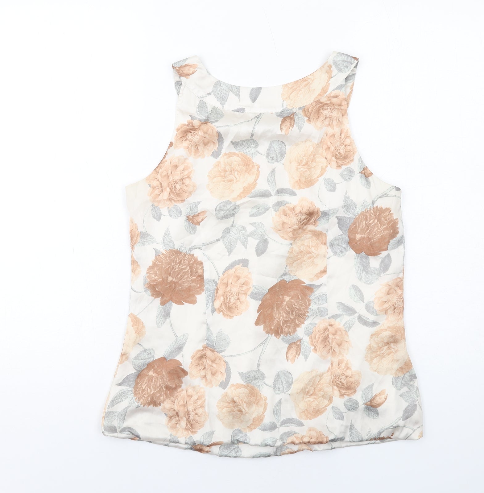 Womens Ivory Floral Polyester Basic Tank Size 8 Boat Neck