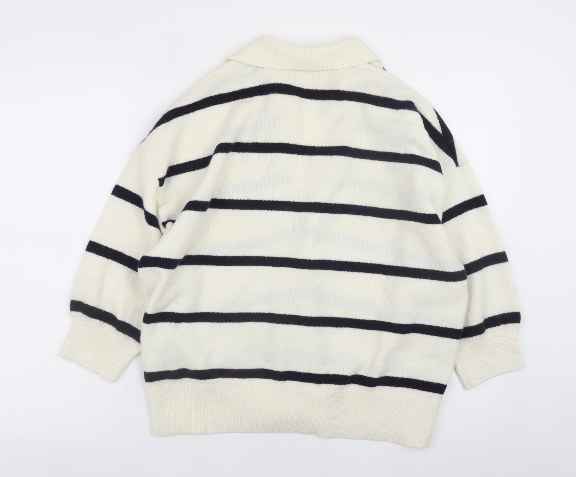 Women's Ivory Striped Collared Pullover Jumper Size M