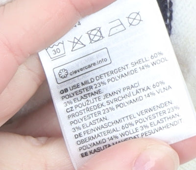 Elevate your everyday wardrobe with this classic H&M women’s ivory striped collared pullover jumper, the perfect blend of comfort and style for the cooler seasons. Designed with a timeless horizontal navy stripe pattern, it offers a relaxed yet refined aesthetic that suits both casual and smart-casual occasions. The soft knit texture, crafted from a blend of polyester, polyamide, wool, and elastane, ensures a flattering drape and comfortable wear throughout the day. The mid-weight composition delivers warmth without heaviness, ideal for layering under a coat or wearing solo during autumn and winter months.This stylish pullover features a collared neckline with an open V-front, adding a touch of sophistication and a subtle preppy vibe. The relaxed fit and ribbed hem accentuate the slightly oversized silhouette, providing ease of movement while maintaining a flattering shape. Finished with long sleeves and tight-knit cuffs for a cosy finish, it creates an effortlessly chic look paired with jeans, skirts, or tailored trousers.The high-quality fabric offers breathability and easy care, designed to keep you comfortable and looking your best with minimal effort. As a versatile staple, this jumper transitions seamlessly from day to evening — equally suitable for laid-back weekends, coffee dates, or everyday wear around the office. The ivory base with crisp navy stripes makes it a timeless piece that never goes out of fashion.Lightly worn but in excellent condition, this jumper shows minimal signs of use, retaining its premium look and feel. Refresh your knitwear collection with this effortlessly stylish and cosy H&M striped jumper — a wardrobe essential that promises both comfort and sophistication without compromise.