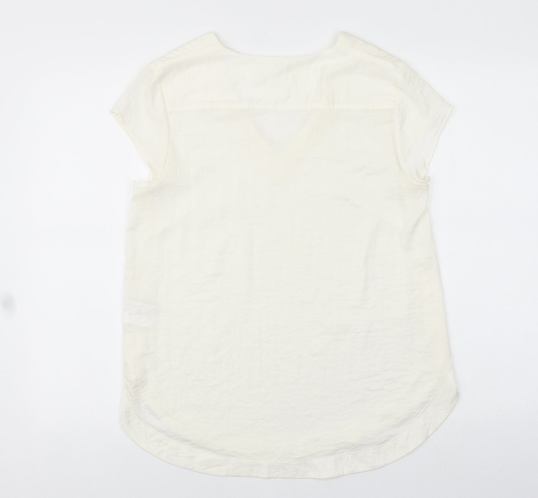 Womens Ivory Viscose Basic Blouse Size 10 V-Neck