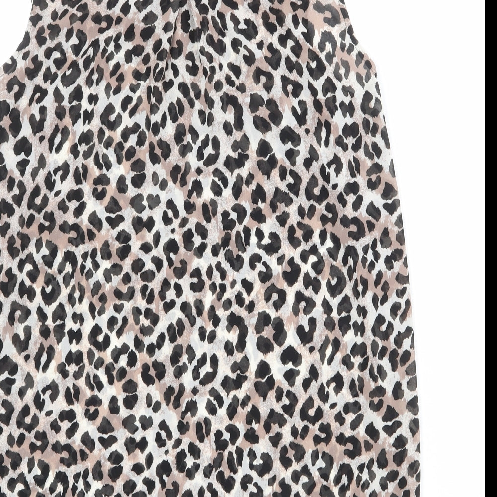 Womens Multicoloured Animal Print Polyester Basic Button-Up Size 12 Collared - Leopard Print