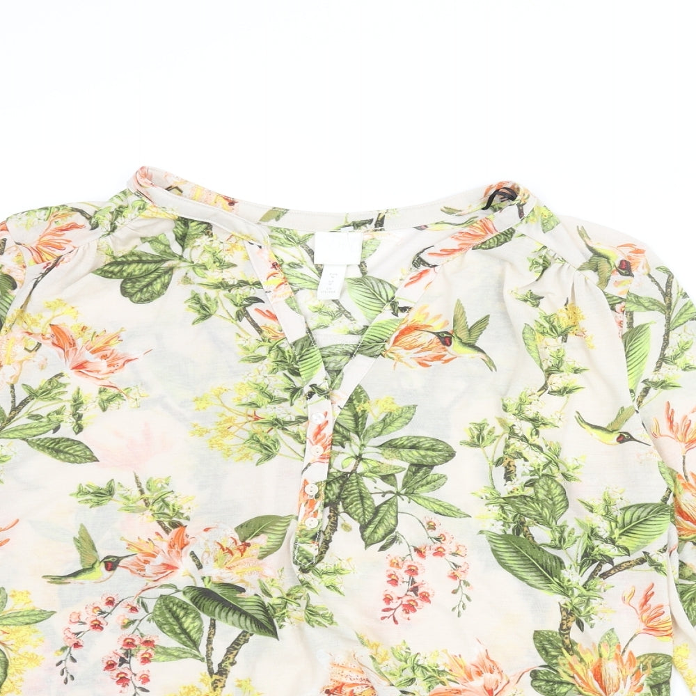 Womens Multicoloured Floral Polyester Basic Blouse Size M V-Neck