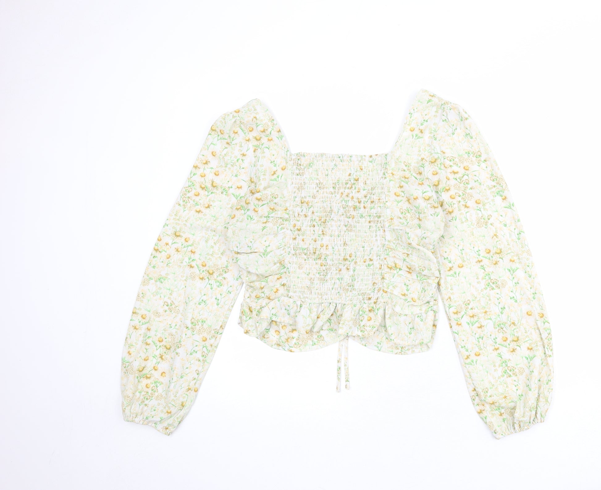 Womens Multicoloured Floral Polyester Basic Blouse Size M V-Neck - Ruched Detail