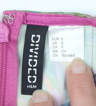 Step into summer with this vibrant H&M slip dress, perfect for both casual outings and lively cocktail parties. The dress features a stunning multicoloured floral pattern, ideal for adding a splash of colour to your wardrobe. Crafted from smooth satin-like polyester, it offers a lightweight feel that’s perfect for warm weather. This sleeveless design with strappy sleeves and a flattering scoop neckline offers effortless elegance and style. Its slimming fit accentuates your silhouette, making it an ideal choice for both relaxed and more formal settings. The dress fastens with a discreet side zip, ensuring a seamless look. Its tropical theme and beach-ready vibes make it a must-have for your summer collection. Easy to care for, this machine washable dress ensures you spend less time worrying and more time enjoying. Whether you're heading to a garden party or a seaside getaway, let this dress be your go-to choice for fun and style. With no visible signs of wear, it's in excellent condition and ready to be a staple in your wardrobe.