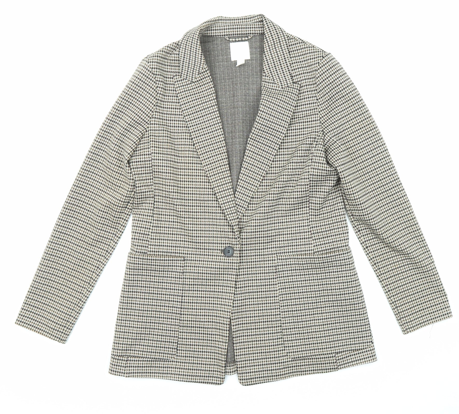 H&M Womens Beige Checked Blazer Size 10 Classic Business Jacket