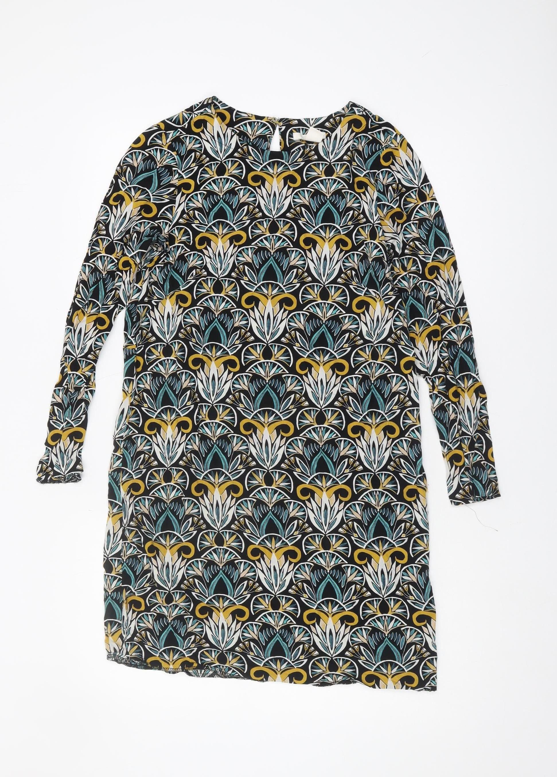 Step out in style with this striking H&M Women's dress, perfect for adding a pop of color to any casual occasion. Crafted from 100% viscose, this dress offers a soft, comfortable fit that's perfect for everyday wear. The vibrant geometric pattern features a mix of colours, creating a multicoloured appearance that draws attention. The dress features a round neckline and long sleeves, making it an ideal choice for those cooler days or evenings out. A button closure at the back adds a charming touch of detail while ensuring ease of wear. Designed with a regular size type, this dress is tailored in a UK size 8, offering a fit that's both flattering and comfortable. As a machine washable item, it fits seamlessly into your regular laundry routine, maintaining its vibrant colors and integrity wash after wash. Whether you're heading out for a coffee date, a casual meet-up with friends, or even a day of shopping, this dress is versatile enough to go with almost anything, pairing well with your favourite pair of sandals or casual footwear. Offered in excellent condition with no visible flaws, it's a great choice for anyone looking to spruce up their wardrobe without breaking the bank. Add this unique piece to your collection and enjoy the effortless style and comfort it brings.