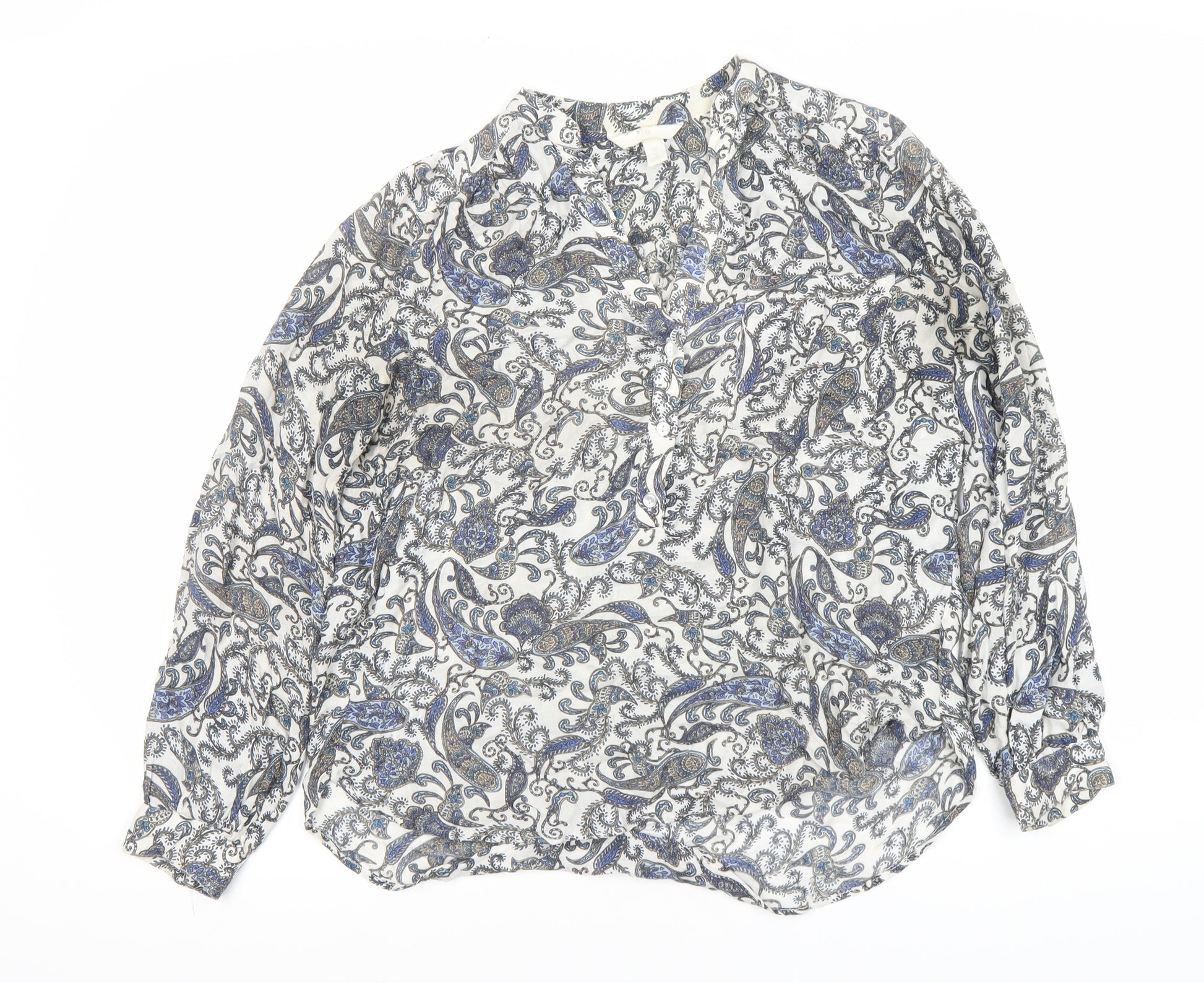Embrace vibrant style with this women's multicoloured paisley blouse from H&M, perfectly designed to add a touch of elegance to your casual wardrobe. The soft and lightweight woven fabric blends cotton, modal, and wool for a comfortable and breathable wear, making it suitable for all seasons. Its regular fit flatters every body shape, ensuring you feel both stylish and comfortable. This blouse features a round neckline and long sleeves, offering a timeless appeal that pairs well with your favourite pair of jeans or a sleek skirt for a casual outing. The intricate paisley pattern adds a classic touch of sophistication, perfect for those who appreciate detailed designs. Machine washable for easy care, this blouse is as practical as it is fashionable. Whether you're heading to a casual meet-up with friends or a relaxed day at work, this blouse is your go-to choice for understated elegance.