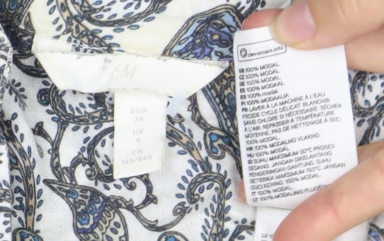 H&M Women’s Multicoloured V-Neck Blouse Size 8 Polyester Long Sleeve
