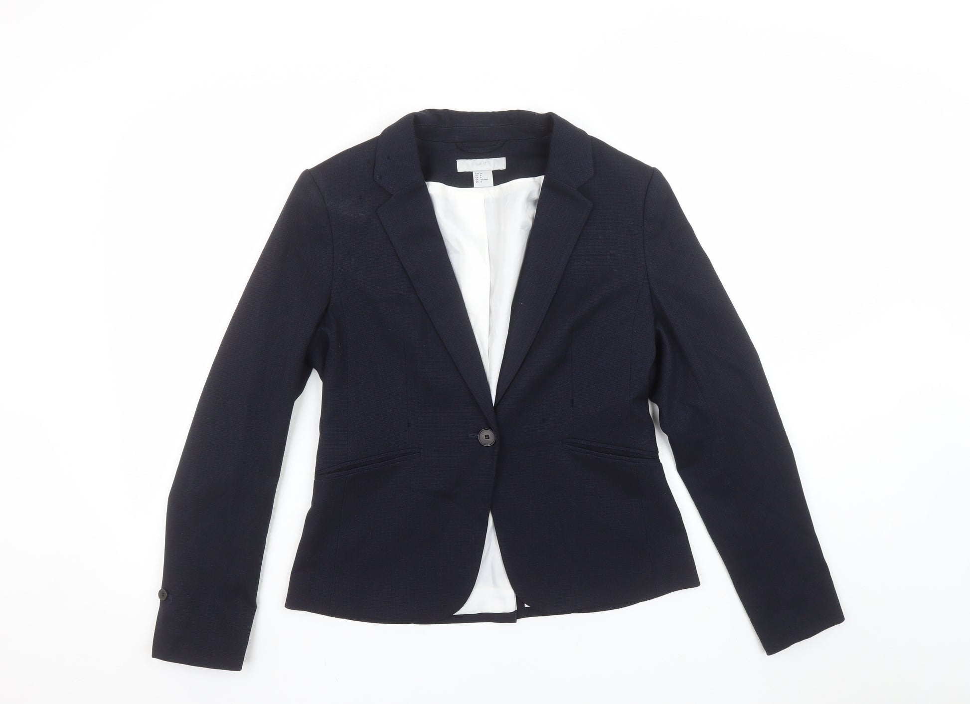 Women's Navy Blue Blazer Size 10 Tailored Single-Breasted Jacket