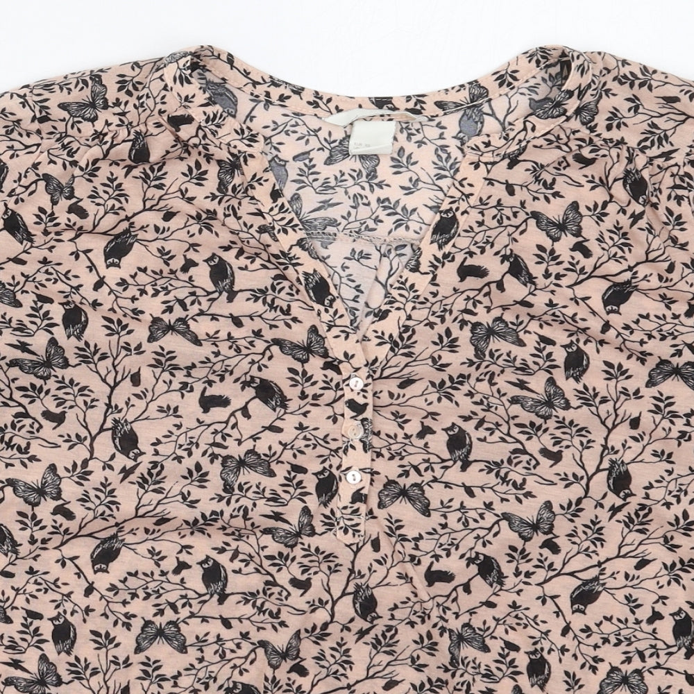 Womens Pink Floral Polyester Basic T-Shirt Size XS V-Neck