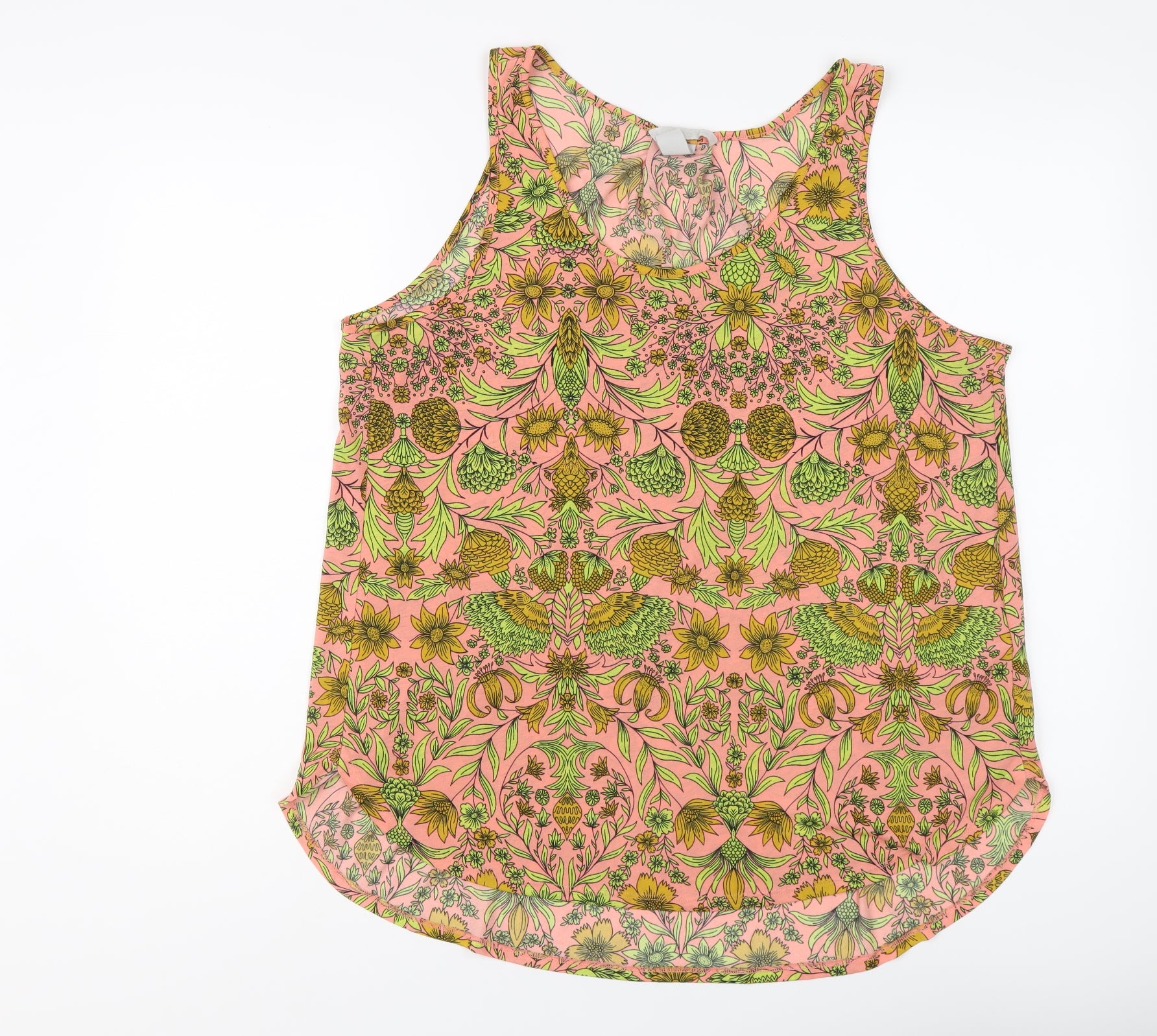 Womens Pink Geometric Polyester Basic Tank Size L Round Neck