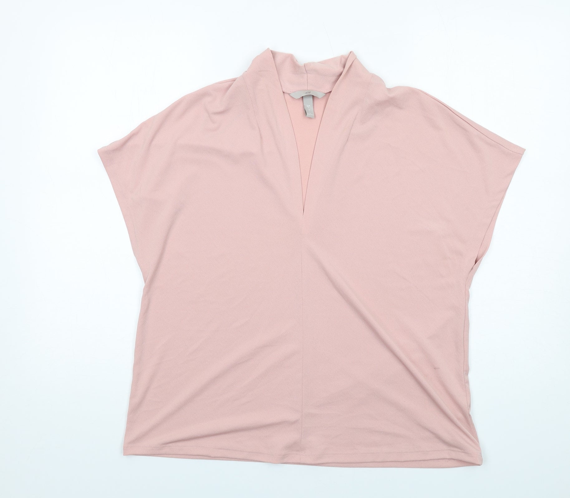 Womens Pink Polyester Basic Blouse Size L V-Neck