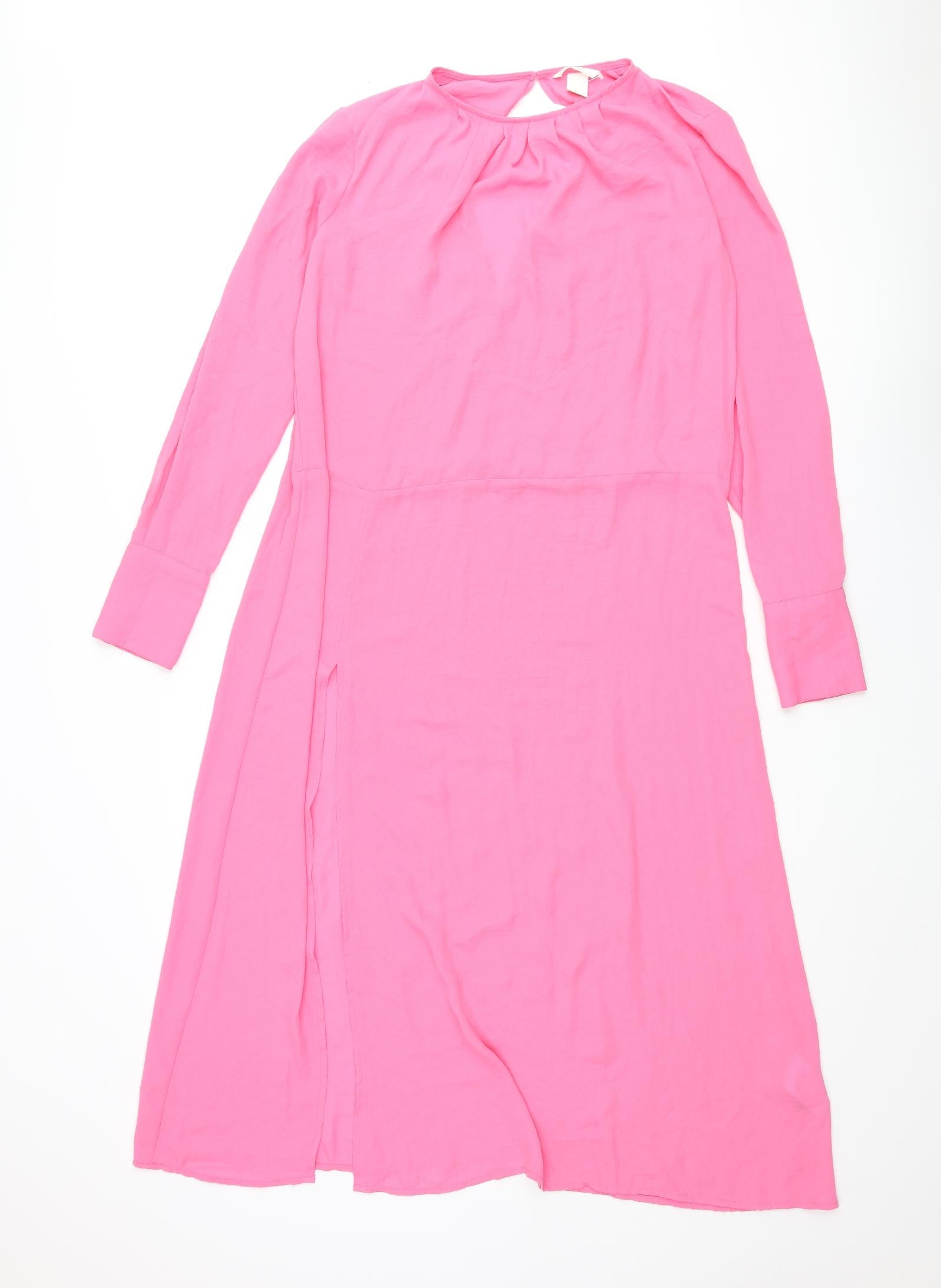 Womens Pink Polyester Shift Size 10 Round Neck Button - Front Slit