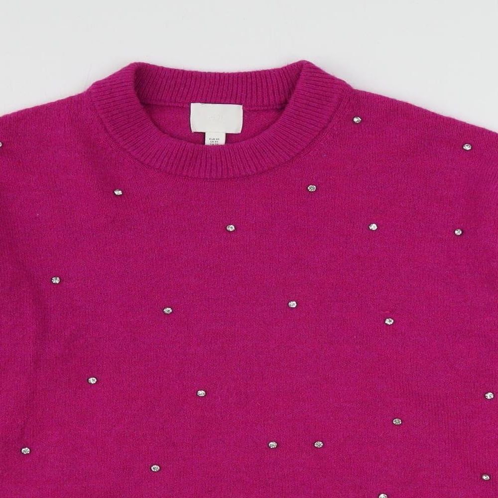 Womens Pink Round Neck Polyester Pullover Jumper Size XS - Jeweled