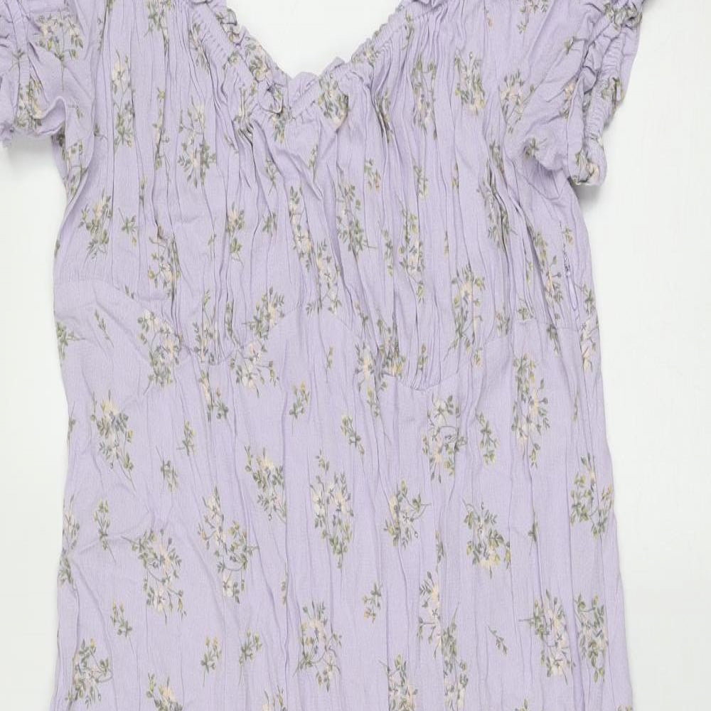 Womens Purple Floral Viscose Maxi Size XL V-Neck Pullover