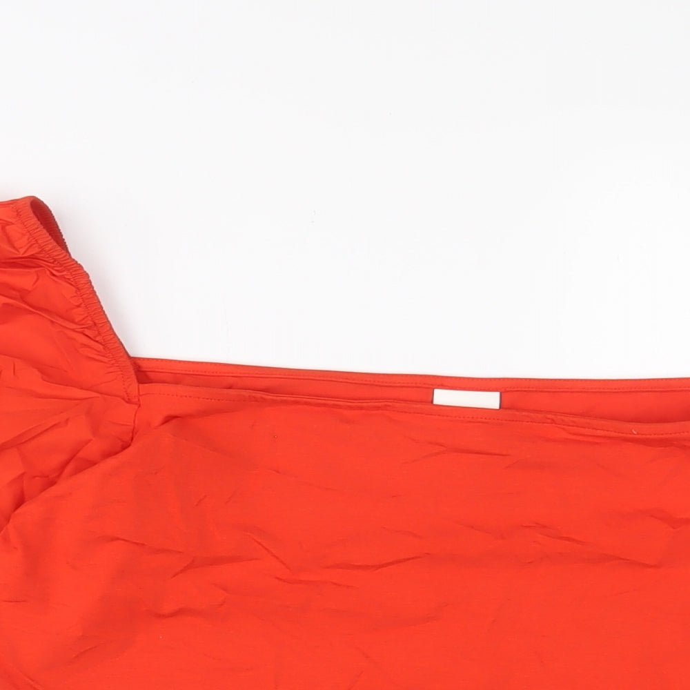 Womens Red Viscose Basic T-Shirt Size L Square Neck