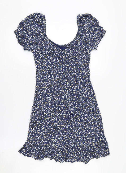 Womens Size XS Floral Cotton Blend Blue Bodycon Dress (Regular)