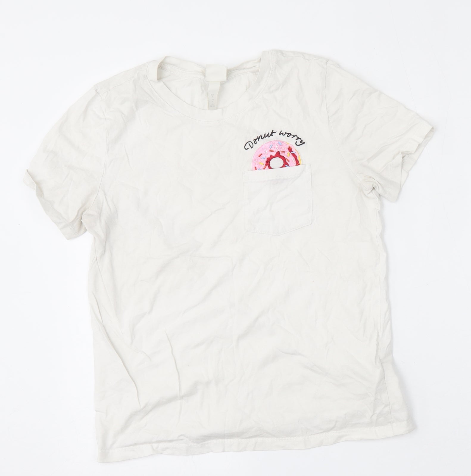 Womens White Cotton Basic T-Shirt Size S Round Neck - Donut Worry