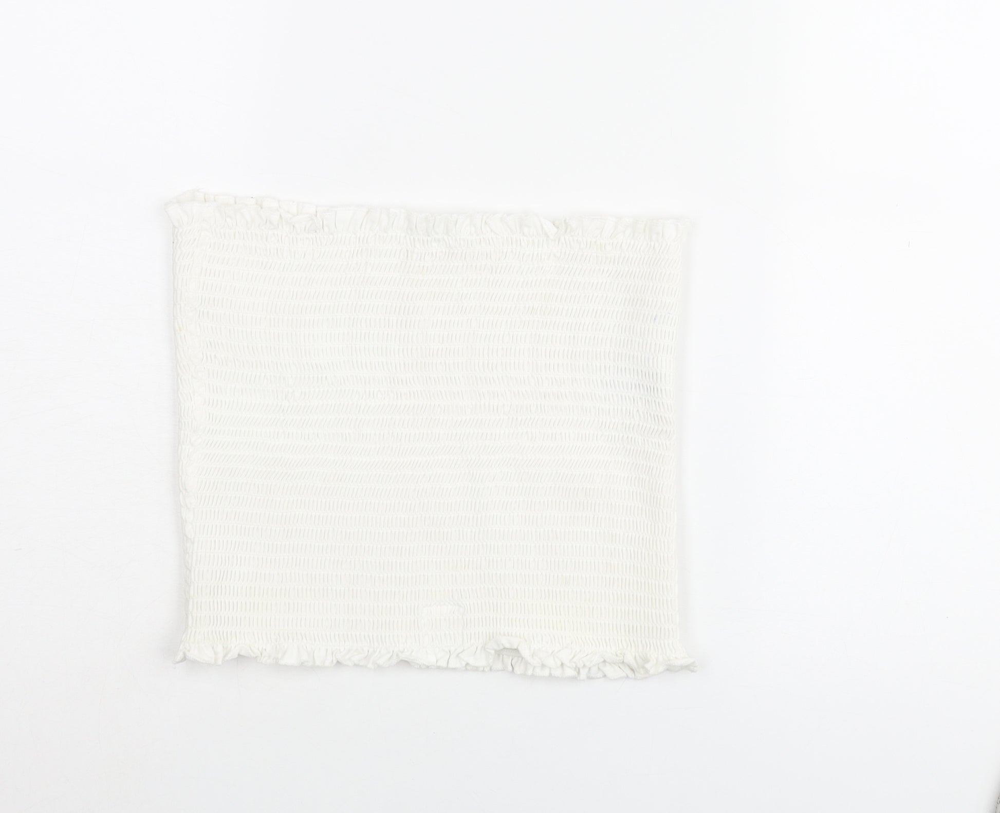 Womens White Cotton Basic Tank Size M Square Neck - Rouched Bandeu