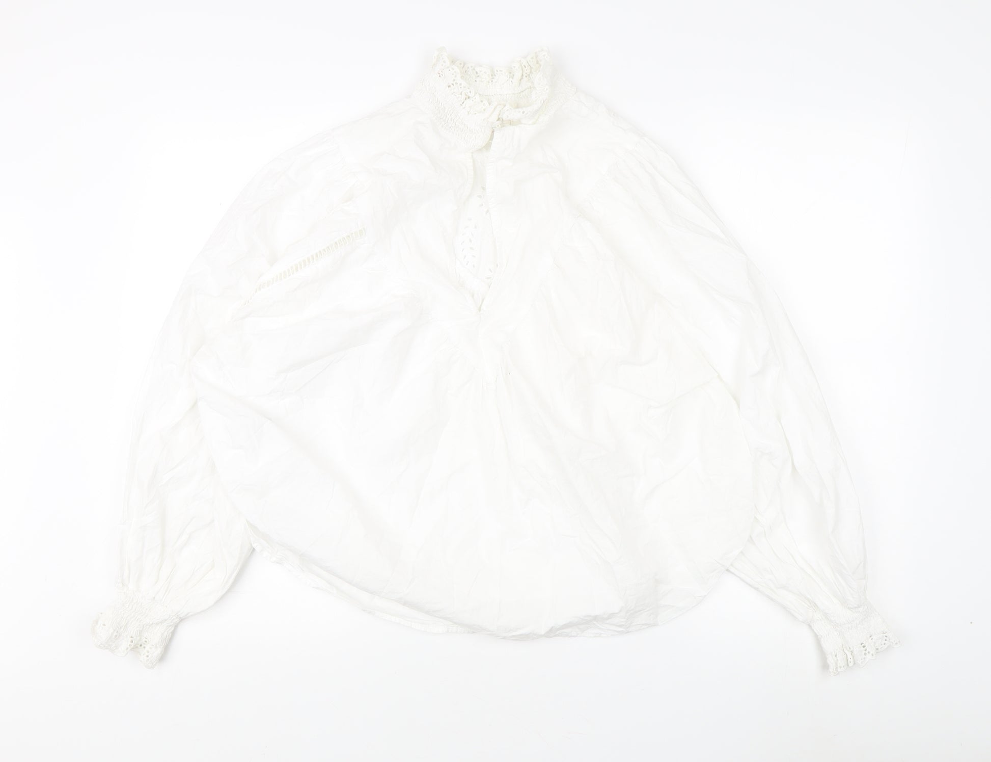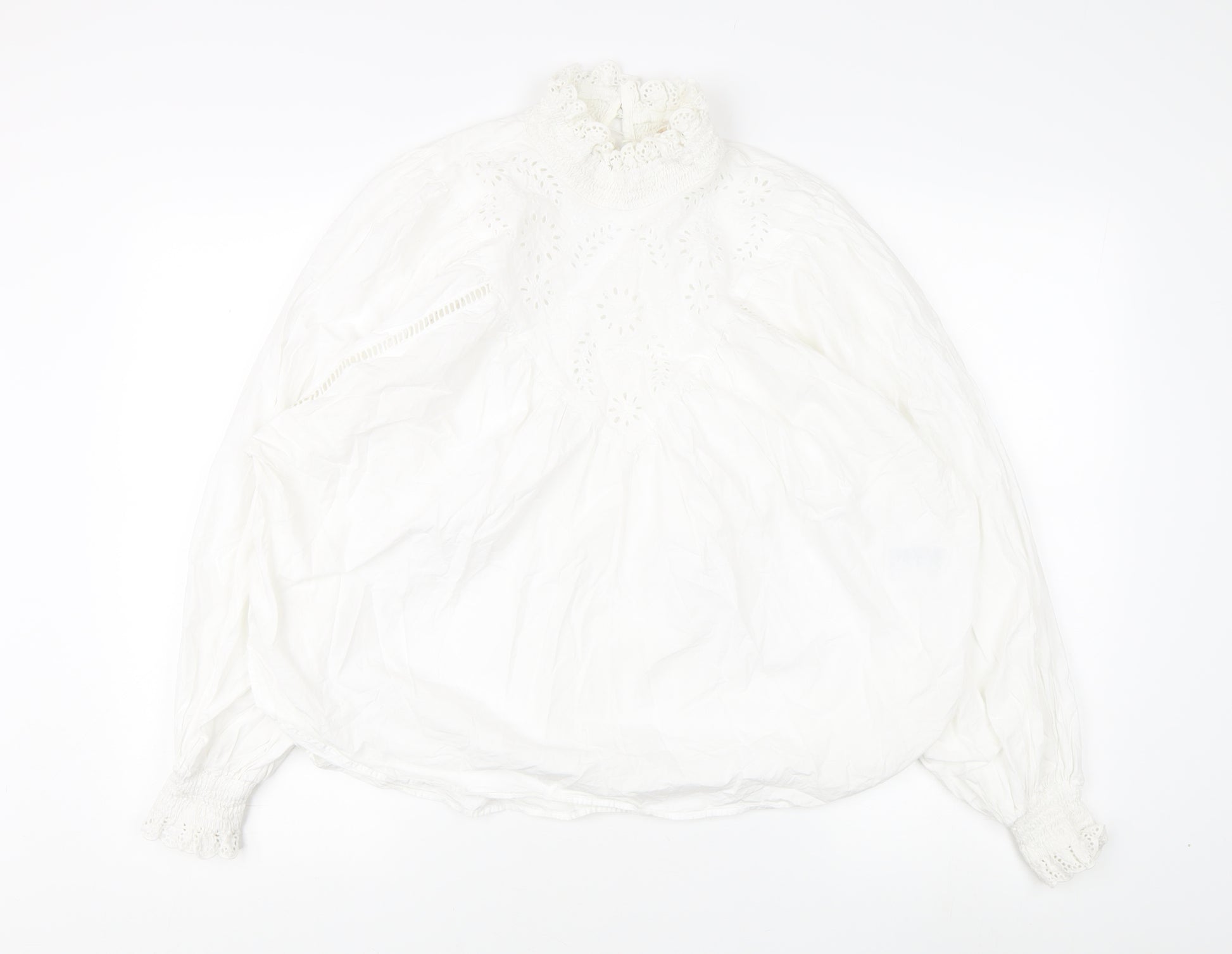 Discover effortless charm with this exquisite white H&M blouse, designed to deliver both style and comfort. Made from pure cotton and polyester, this tunic features a delicate embroidered pattern that adds a touch of elegance. The breathable, lightweight fabric makes it ideal for spring and summer occasions, while the elasticated balloon sleeves offer a modern twist to your wardrobe. This high neck blouse, with its woven fabric and solid pattern, is perfect for casual days, making it a versatile addition to your clothing collection.