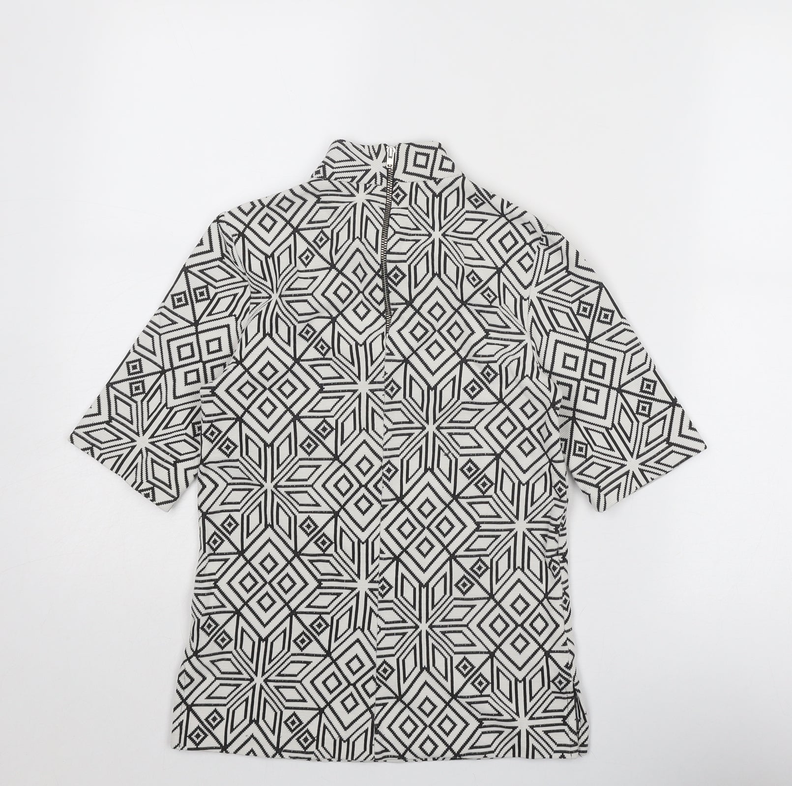 Womens White Geometric Cotton Basic T-Shirt Size 4 High Neck